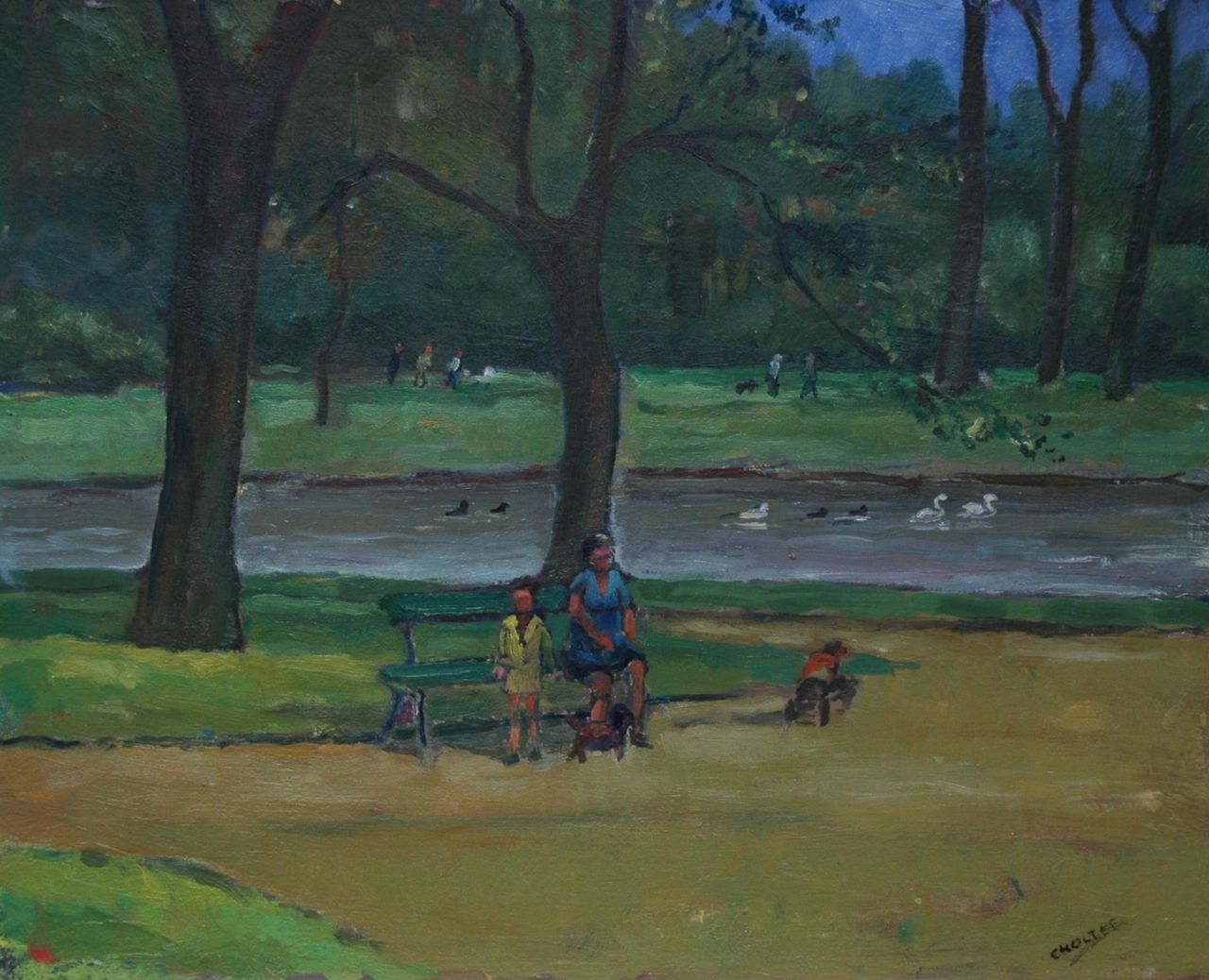 Cor Noltee kunstwerk • schilderij • voorheen te koop Moeder met kinderen in het park