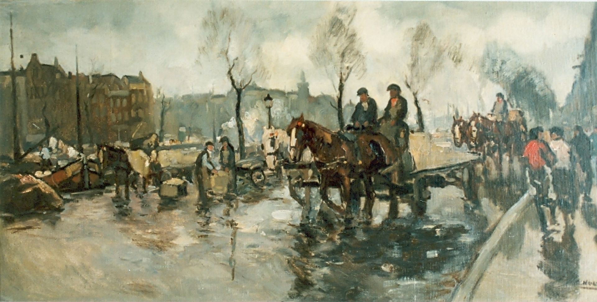 Cor Noltee kunstwerk • schilderij • voorheen te koop Paarden op drukke gracht