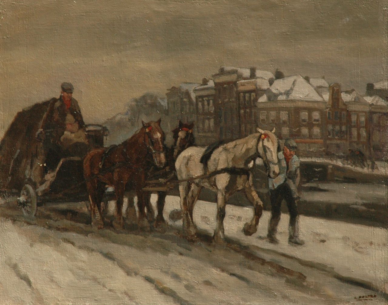 Cor Noltee kunstwerk • schilderij • voorheen te koop Sleperswagen in de sneeuw in Amsterdam