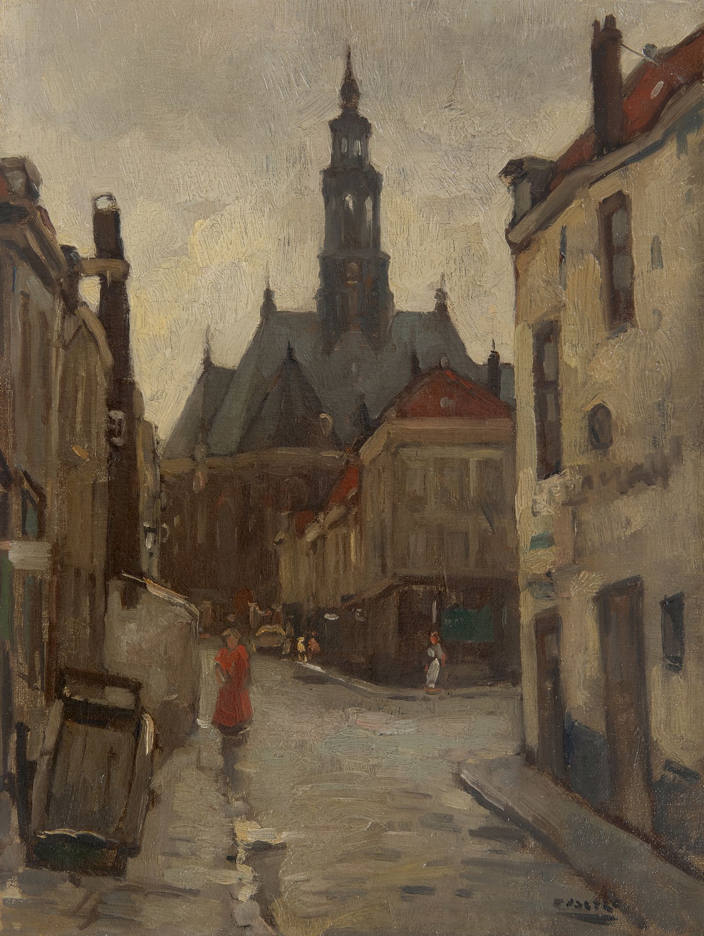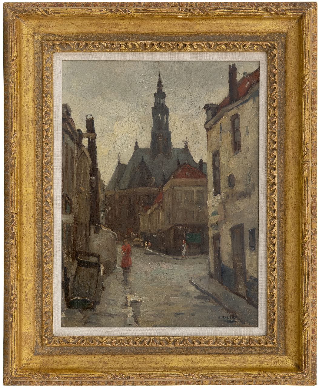 Cor Noltee kunstwerk • schilderij • te koop Stadsgezicht in Den Haag met de Nieuwe Kerk