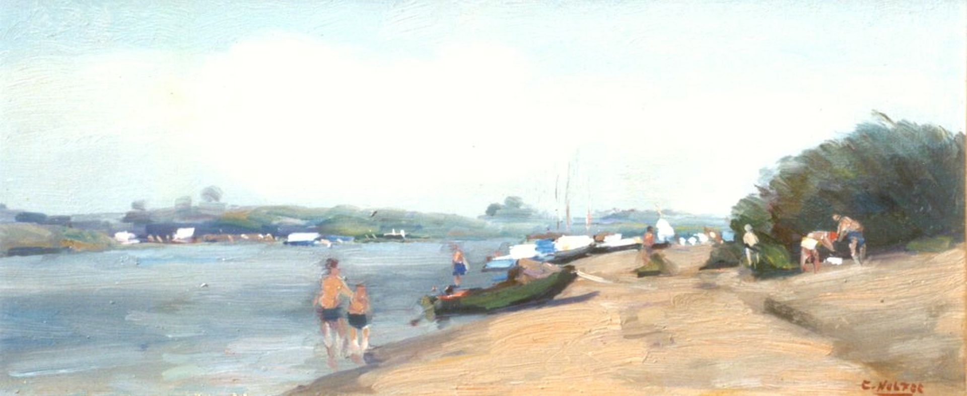 Cor Noltee kunstwerk • schilderij • voorheen te koop Strandje aan de Merwede bij Dordrecht