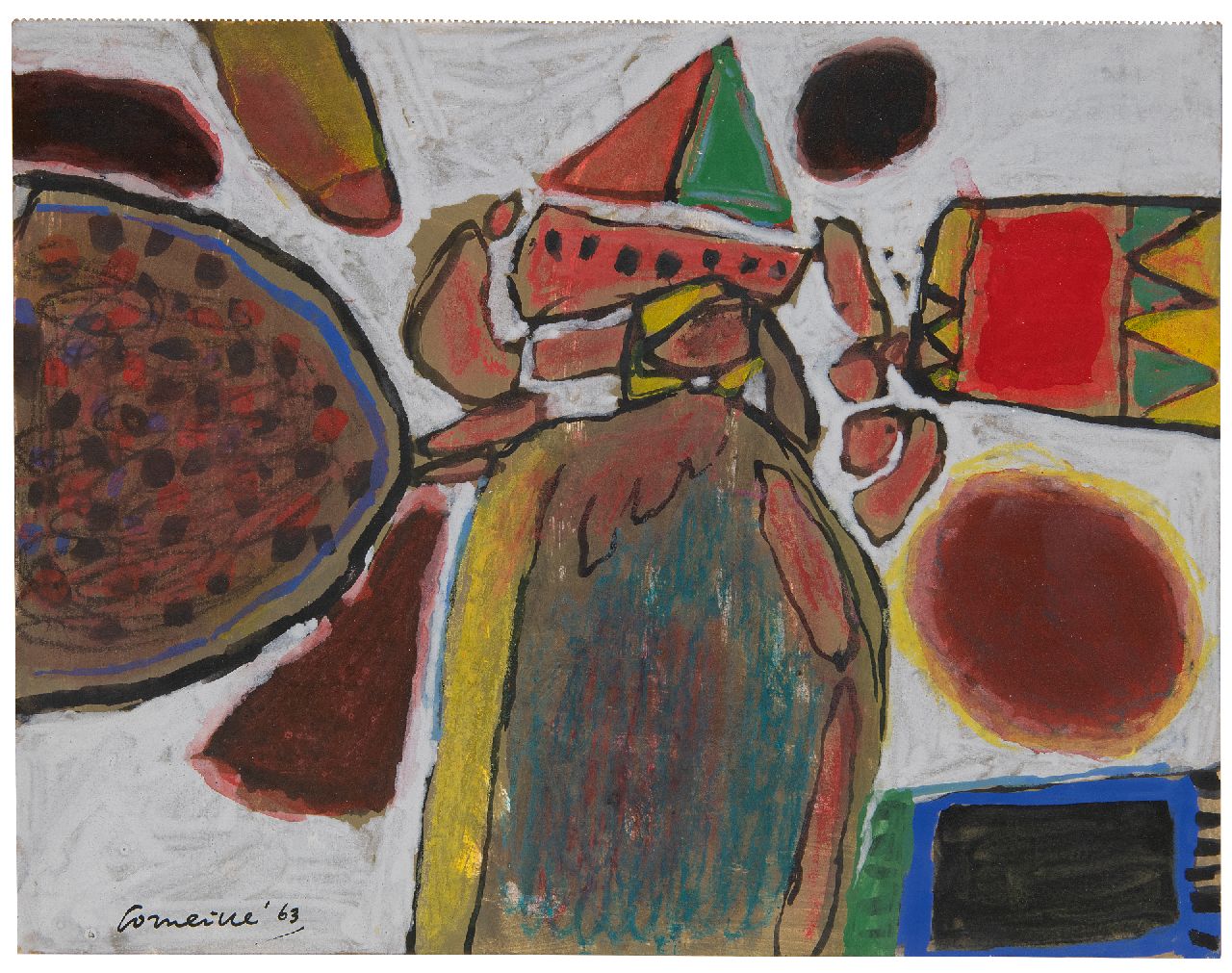 Corneille | Untitled (uit de serie Les aventures de Pinocchio), gouache over zeefdruk op papier, 68,1 x 98,7 cm, gesigneerd l.b. en gedateerd '73-'75