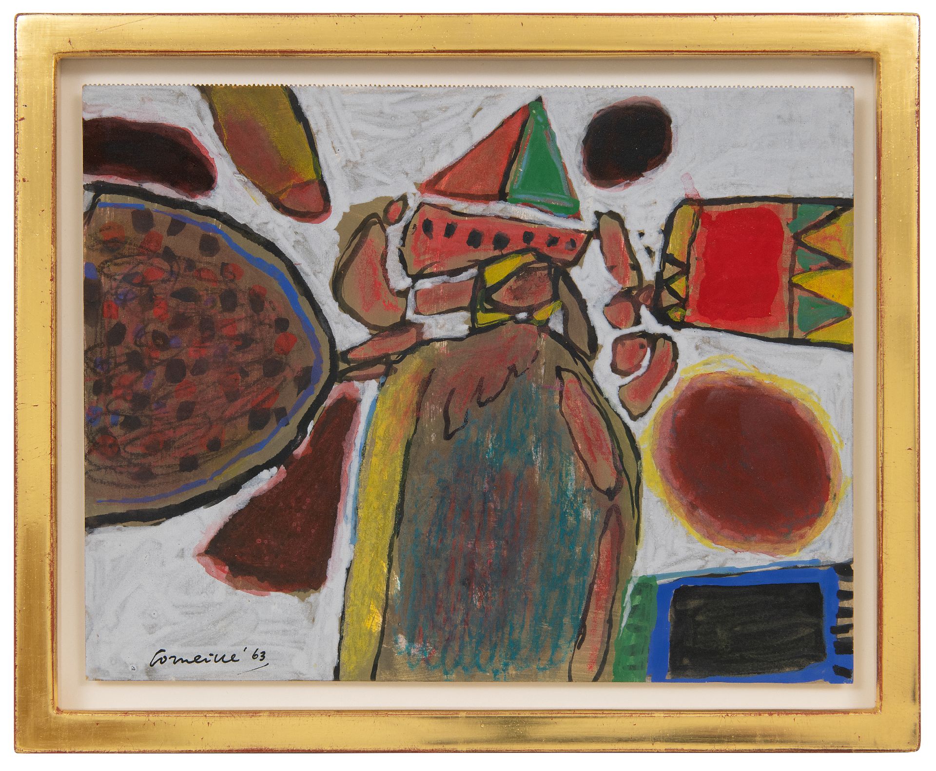 krijt en gouache op papier 22,9 x 29,7 cm, gesigneerd linksonder en gedateerd '63