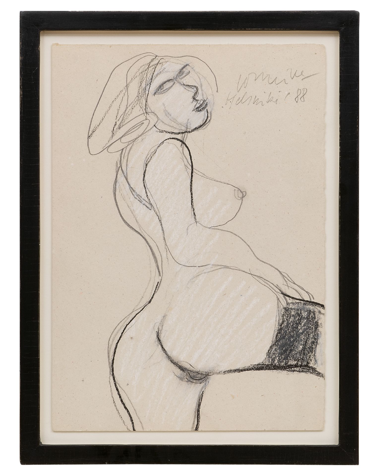 potlood en krijt op papier 29,7 x 21,0 cm, gesigneerd rechtsboven en gedateerd 'Helsinki' '88