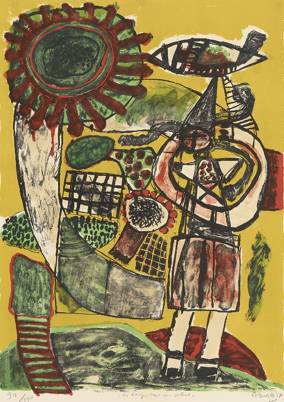 Corneille was naast Appel en Constant een van de hoofdfiguren van de CoBrAgroep (1948-1951) in Nederland. In de jaren vijftig betrok hij samen met Appel een atelier aan de Rue Santeuil in Parijs, waar hij een stijl ontwikkelde die werd gekenmerkt door een expressief lijnenspel en een weloverwogen compositie. Naar aanleiding van een aantal verre reizen (Afrika) in 1957 en 1958 schilderde Corneille gedurende een paar jaar een soort abstracte stadsconstructies en agglomeraties bestaande uit een grillige opeenstapeling van vormen en lijnen. In de jaren zestig ging hij over tot de uitbundig geschilderde vogels, vrouwen en zonnen waarmee hij bij het grote publiek bekend zou worden.