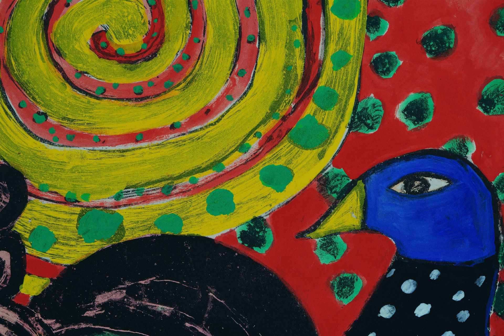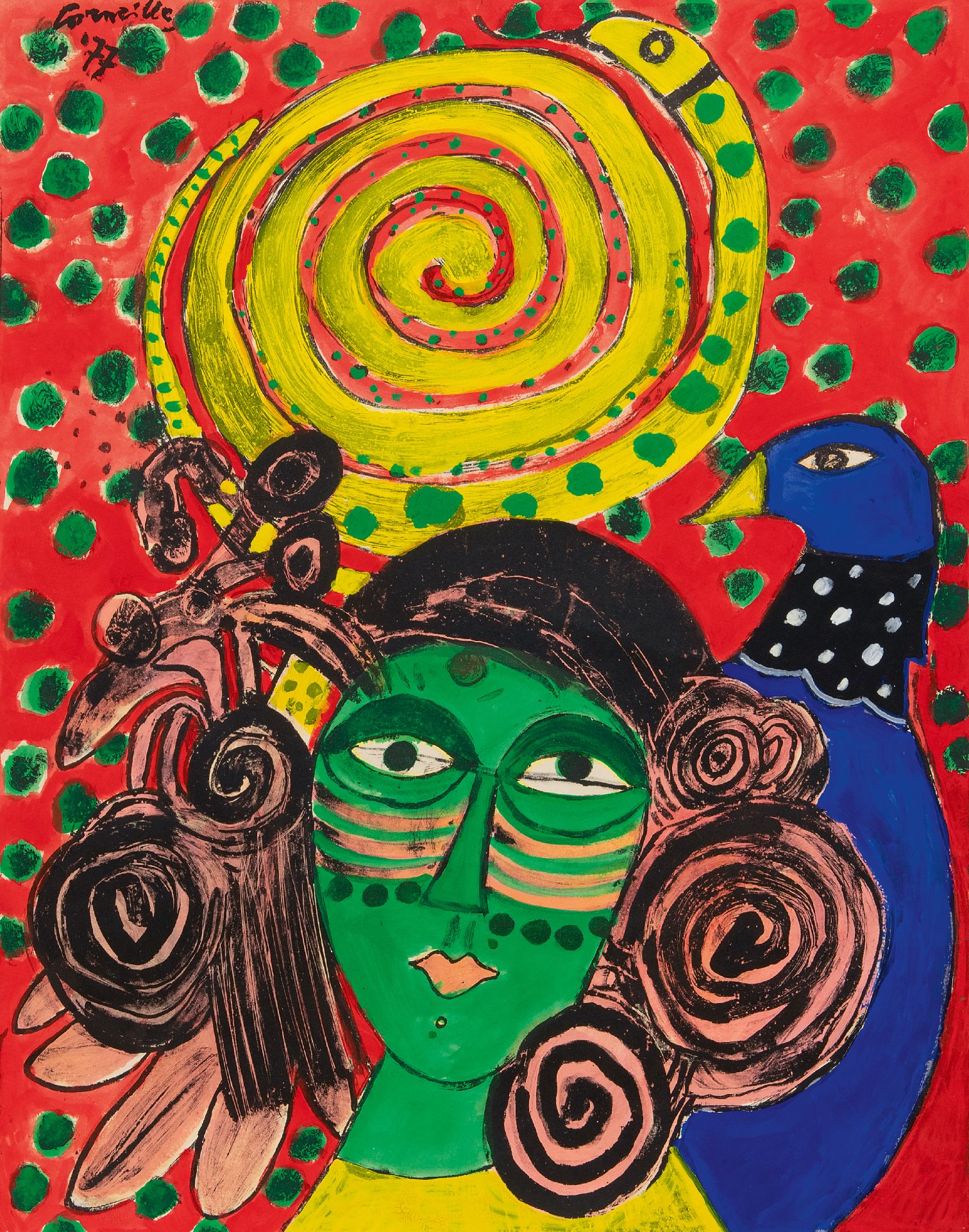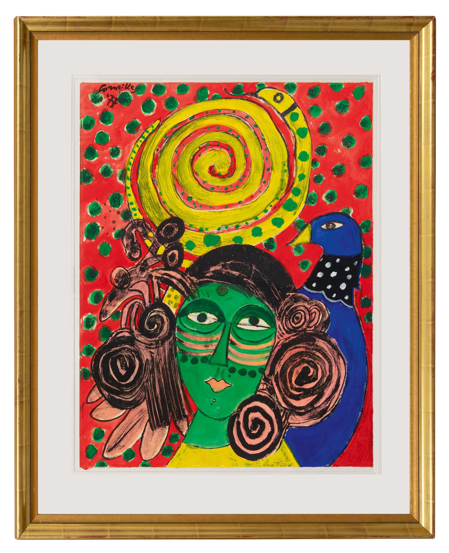 Corneille kunstwerk • aquarel • tekening • te koop Vrouw met vogel en slang