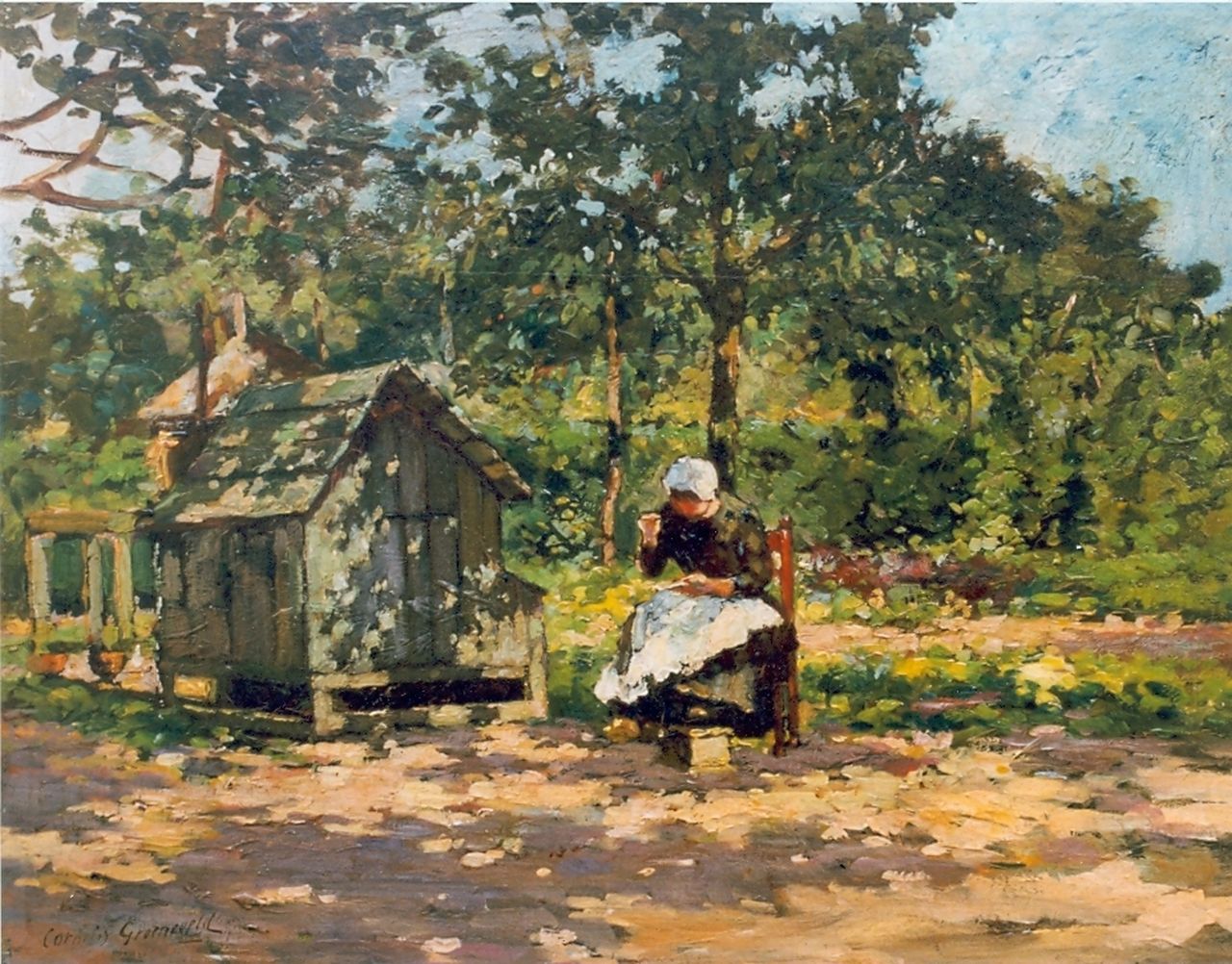 Cornelis Groeneveld kunstwerk • schilderij • voorheen te koop Het naaiwerk
