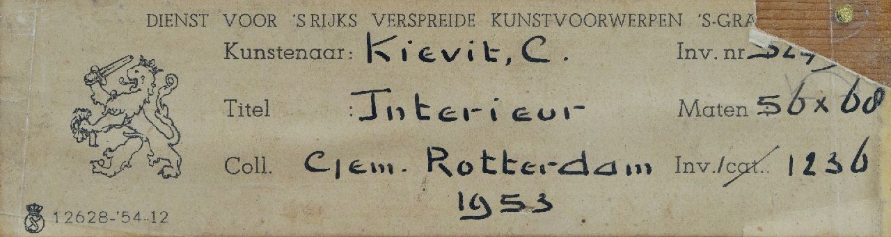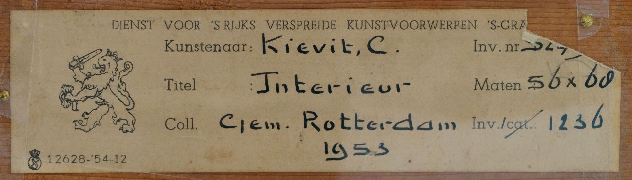 Cornelis Kievit kunstwerk • schilderij • voorheen te koop Interieur