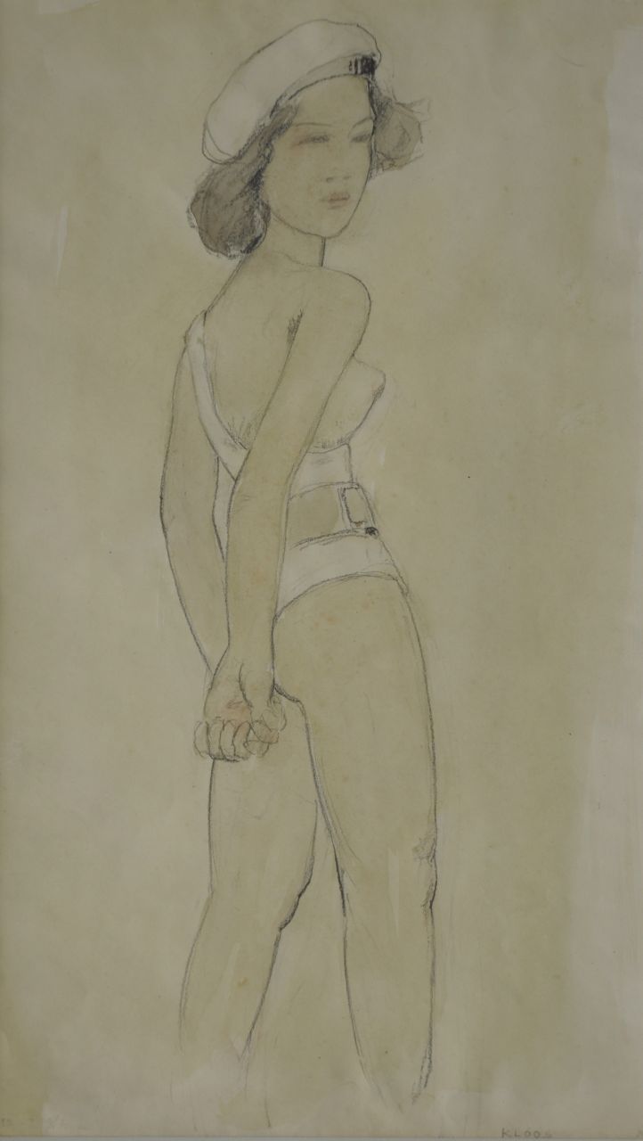 Cornelis Kloos kunstwerk • aquarel • tekening • voorheen te koop Meisje met wit lijfje