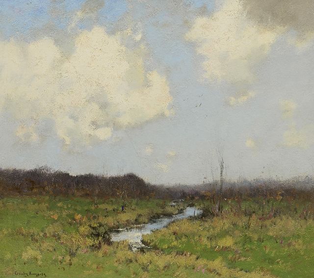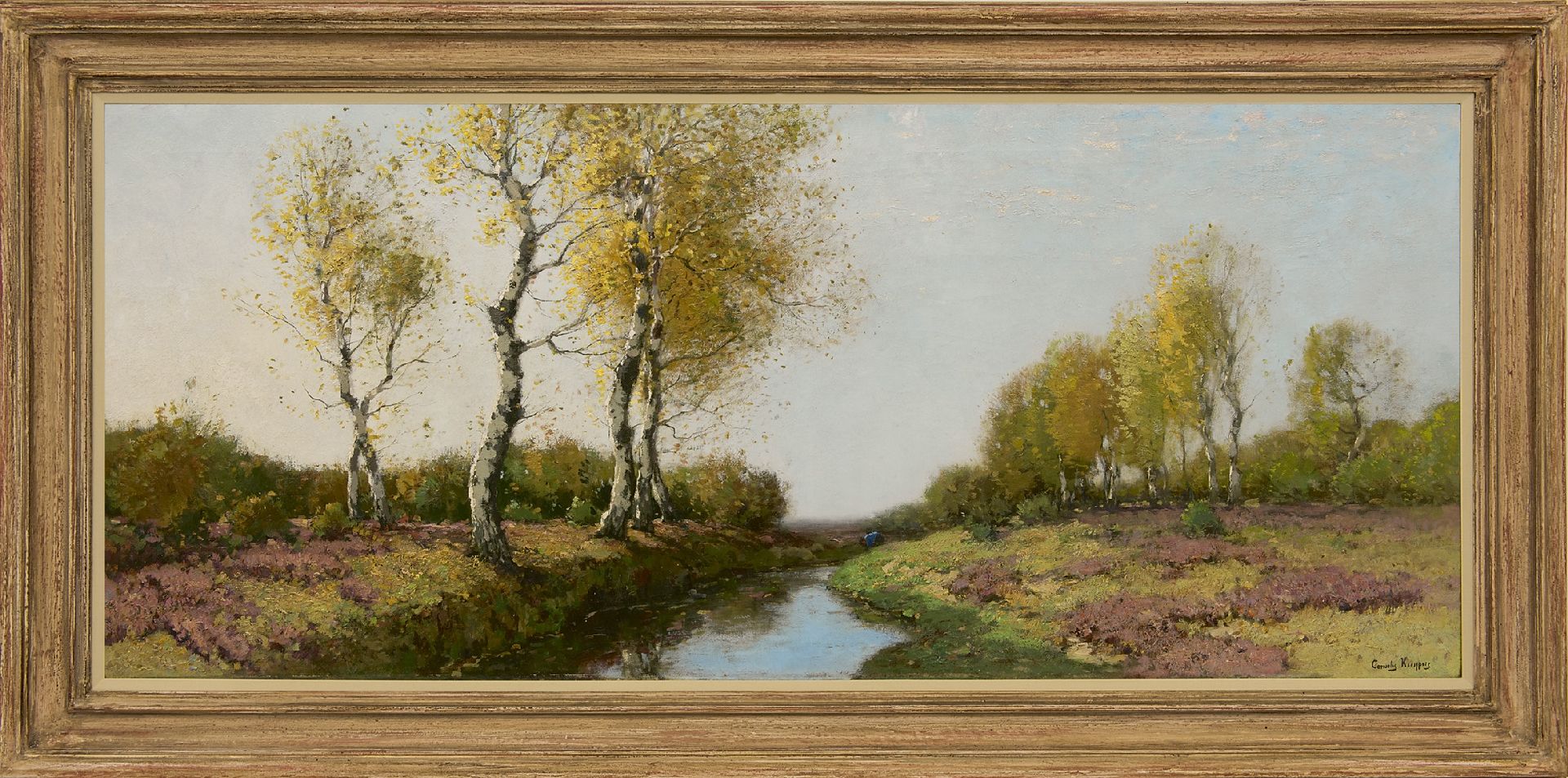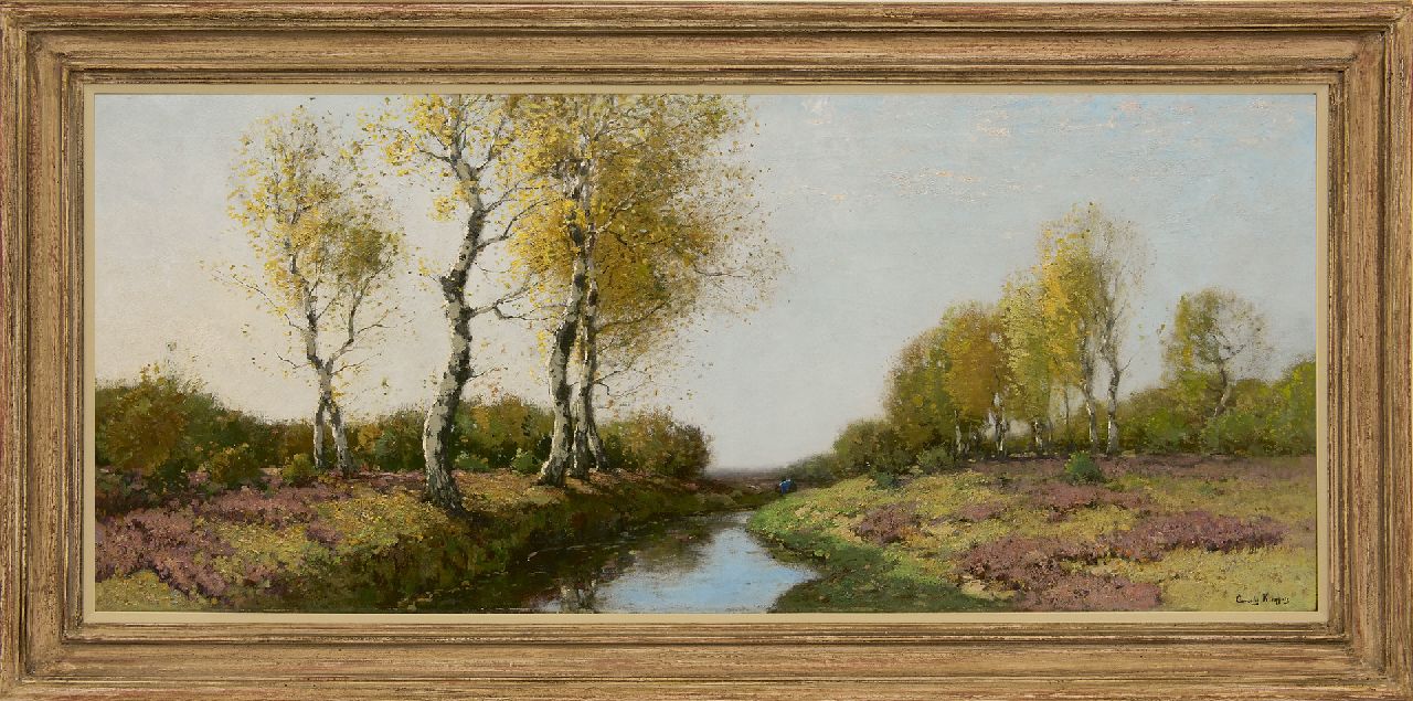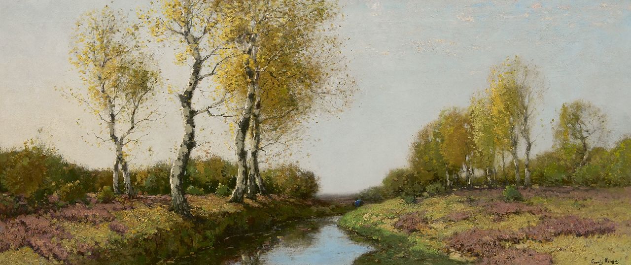 Cornelis Kuijpers kunstwerk • schilderij • voorheen te koop Heidelandschap met berken, langs een beek