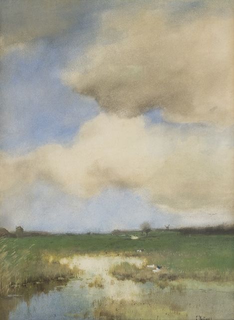 Cornelis Kuijpers wordt gerekend tot de nabloei van de Haagse School. Zijn weergave van het landschap doet sterk denken aan Willem Maris. Gestimuleerd door zijn leermeesters van de Quellinusschool in Amsterdam trok Kuijpers met zijn schildersezel de natuur in. Eerst in Rijswijk en later in het bosrijke Renkum (1898-1910) schilderde hij in een zilvergrijs en smaragdgroen palet dampige weilanden met slootjes, bloeiende boomgaarden en dobberende tjalken langs de waterkant. Samen met onder anderen Théophile de Bock en Charles Dankmeijer exposeerde hij zijn werk op tentoonstellingen van de Renkumse kunstenaarsvereniging Pictura Veluvensis.