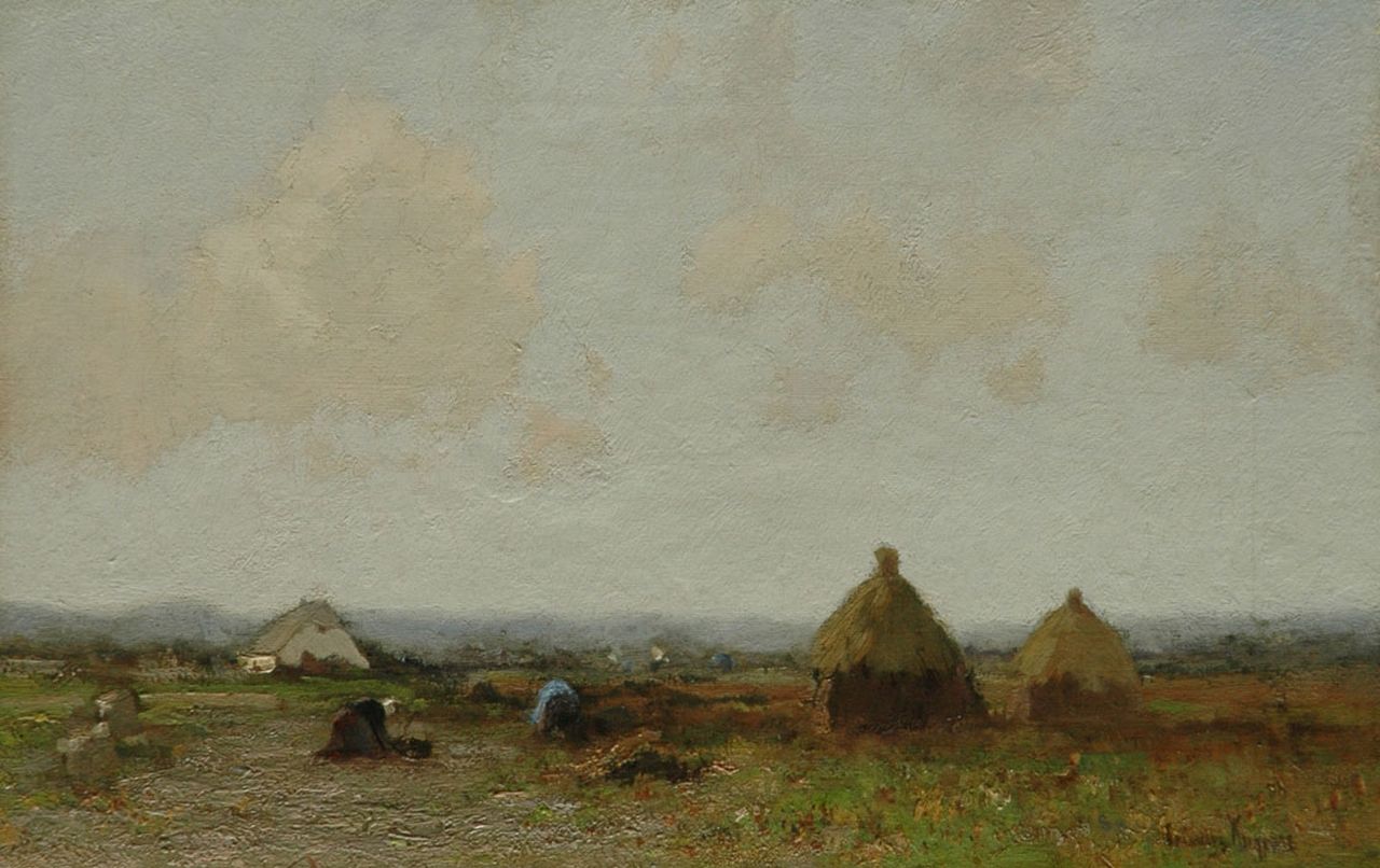 Cornelis Kuijpers kunstwerk • schilderij • voorheen te koop Landschap met aardappelrooiers