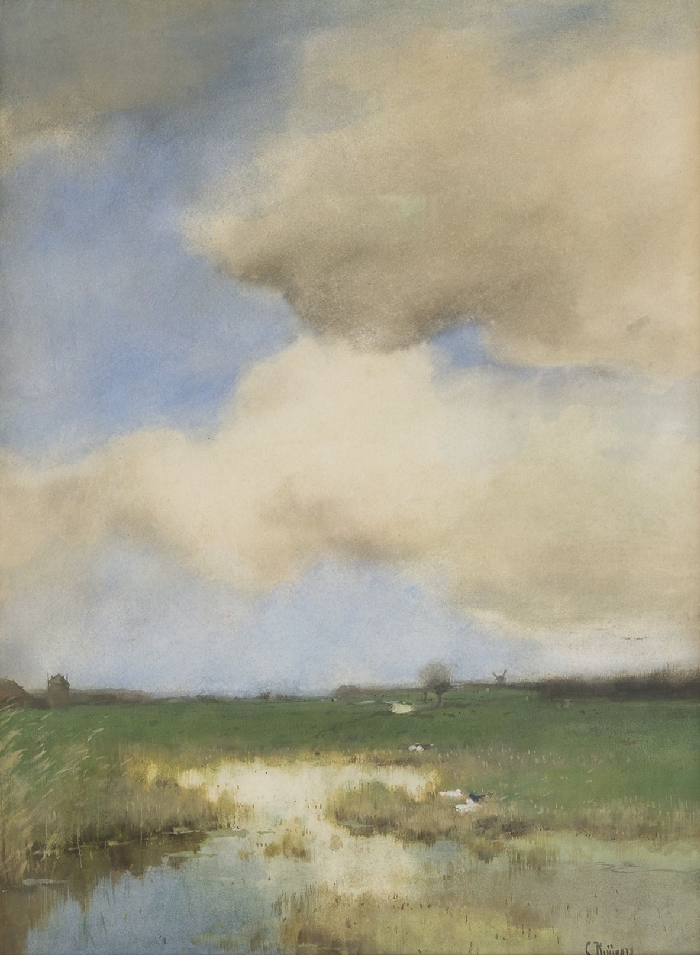 Cornelis Kuijpers kunstwerk • aquarel • tekening • te koop Polderlandschap