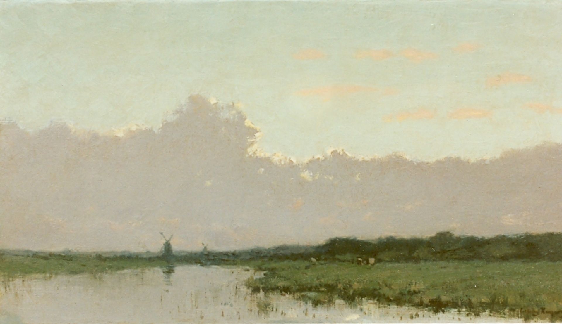 Cornelis Kuijpers kunstwerk • schilderij • voorheen te koop Rivierlandschap met molens