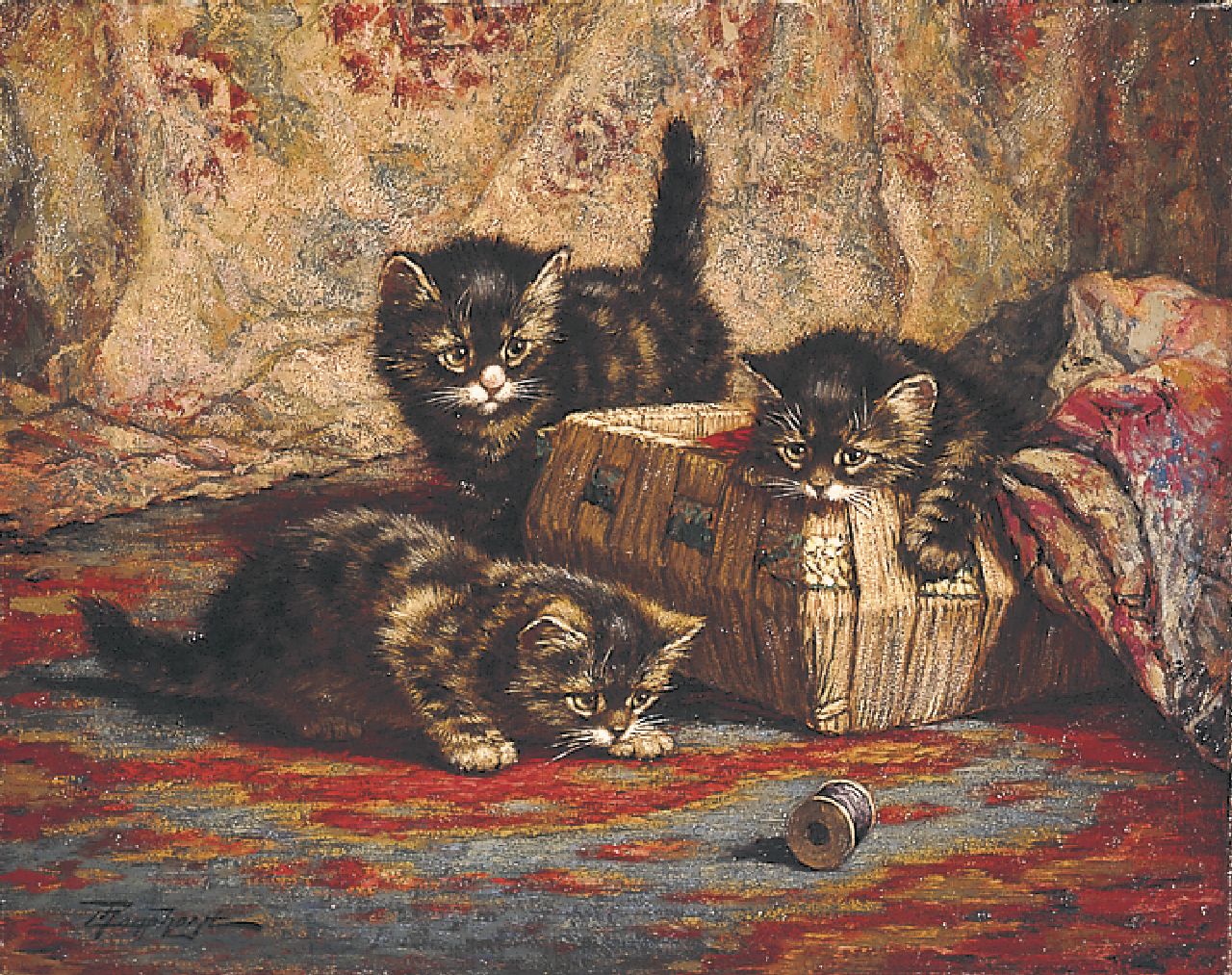 Cornelis Raaphorst kunstwerk • schilderij • voorheen te koop Drie spelende poesjes
