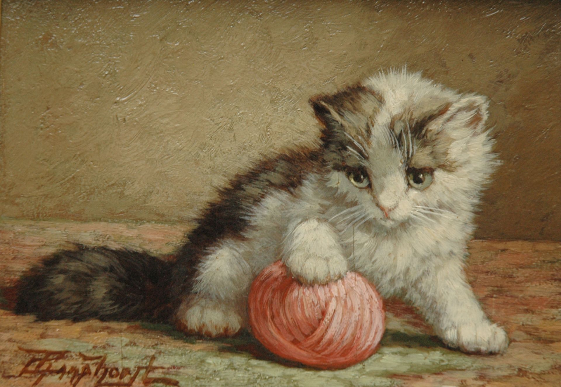 Cornelis Raaphorst kunstwerk • schilderij • voorheen te koop Kitten met knot wol
