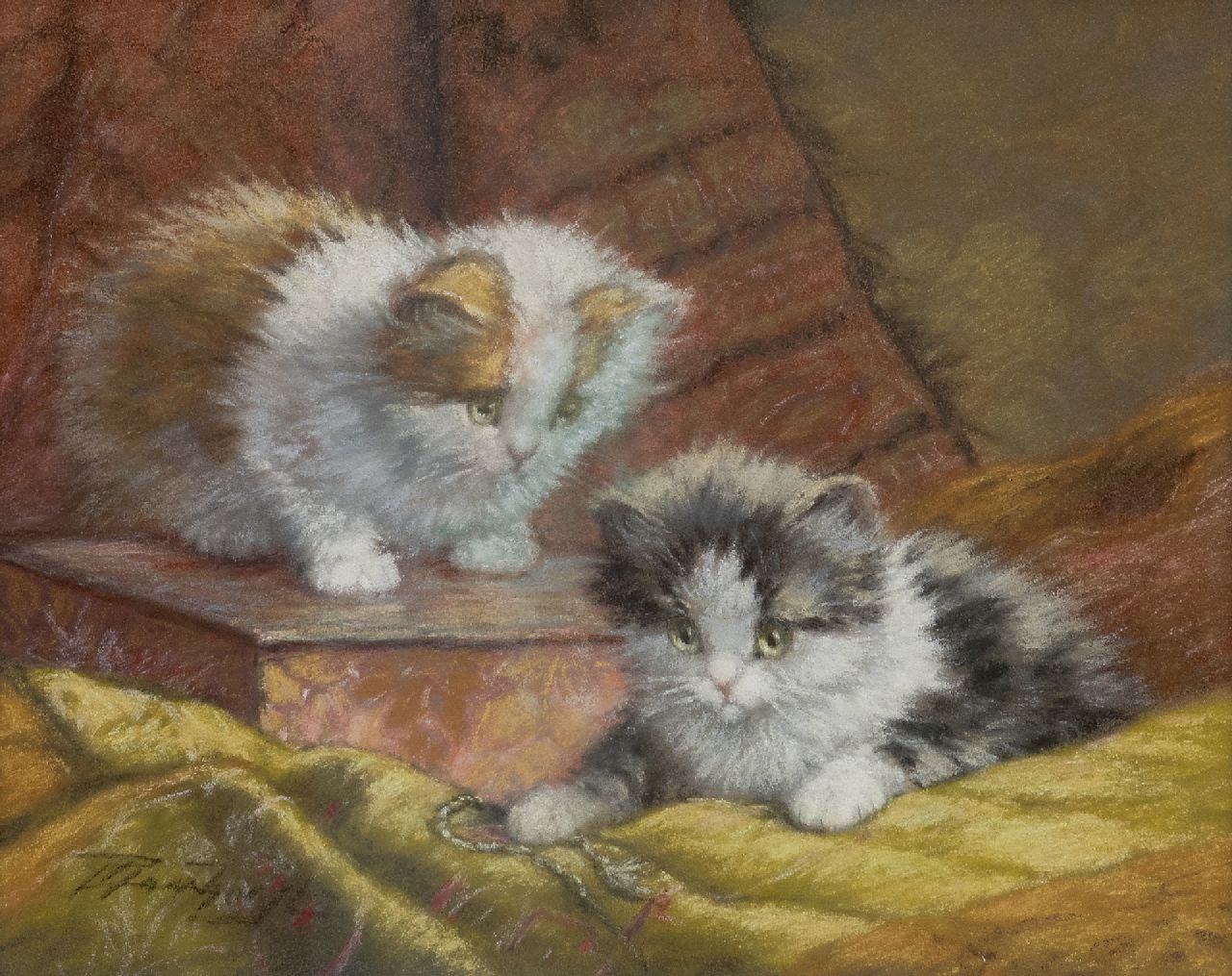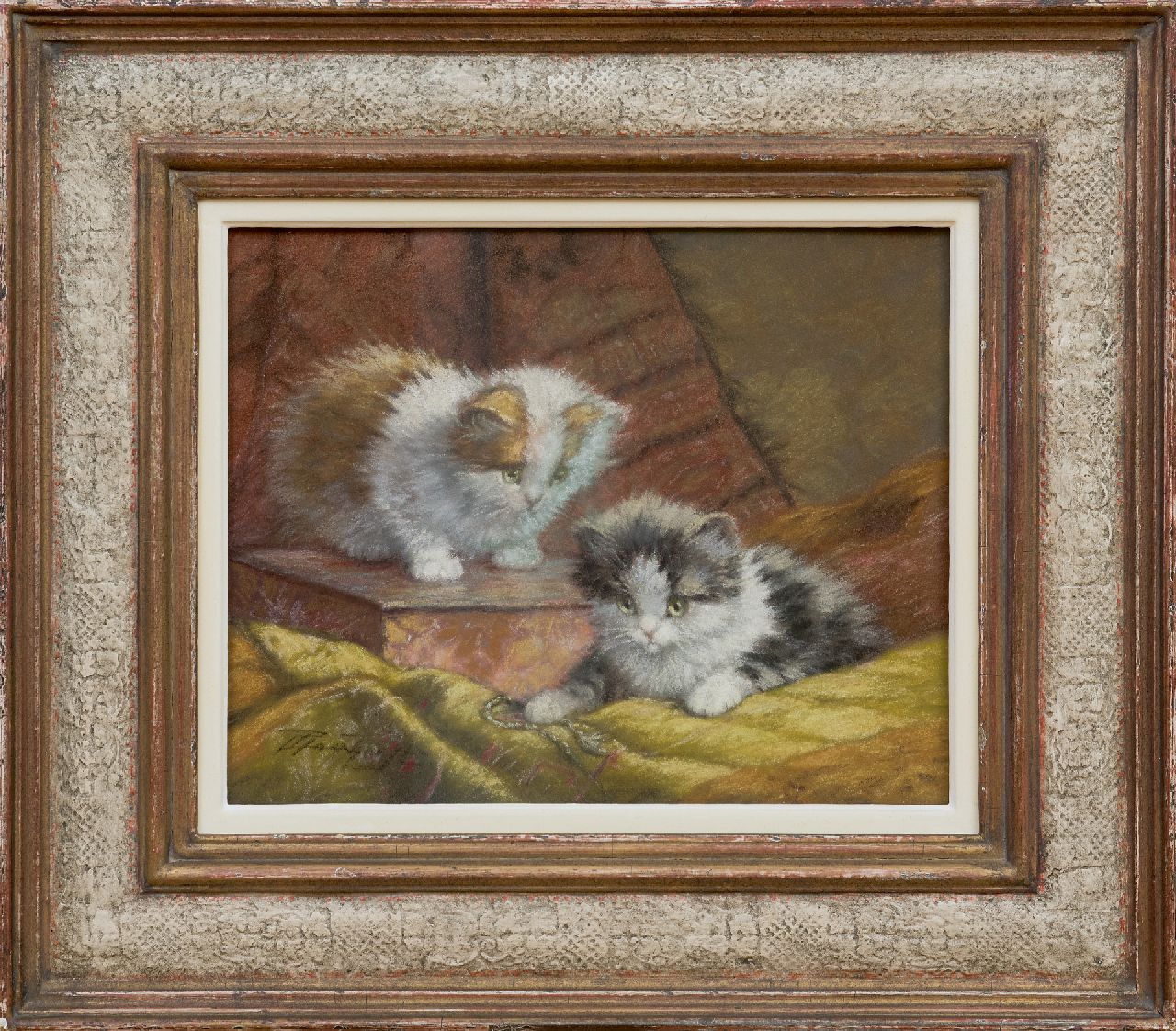 Cornelis Raaphorst | Drie spelende katjes bij een poef, olieverf op doek, 40,4 x 50,7 cm, gesigneerd l.o. en zonder lijst