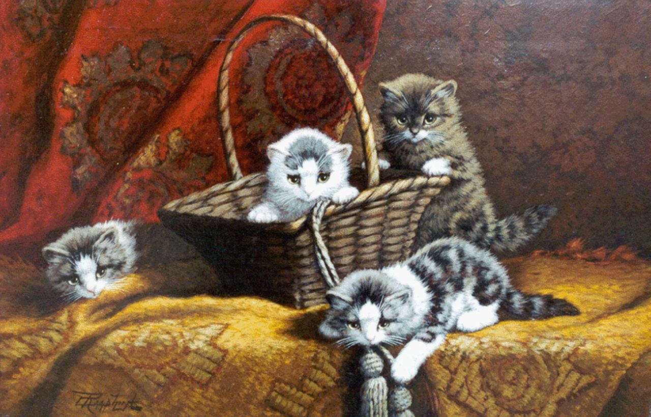 Cornelis Raaphorst kunstwerk • schilderij • voorheen te koop Vier jonge poesjes