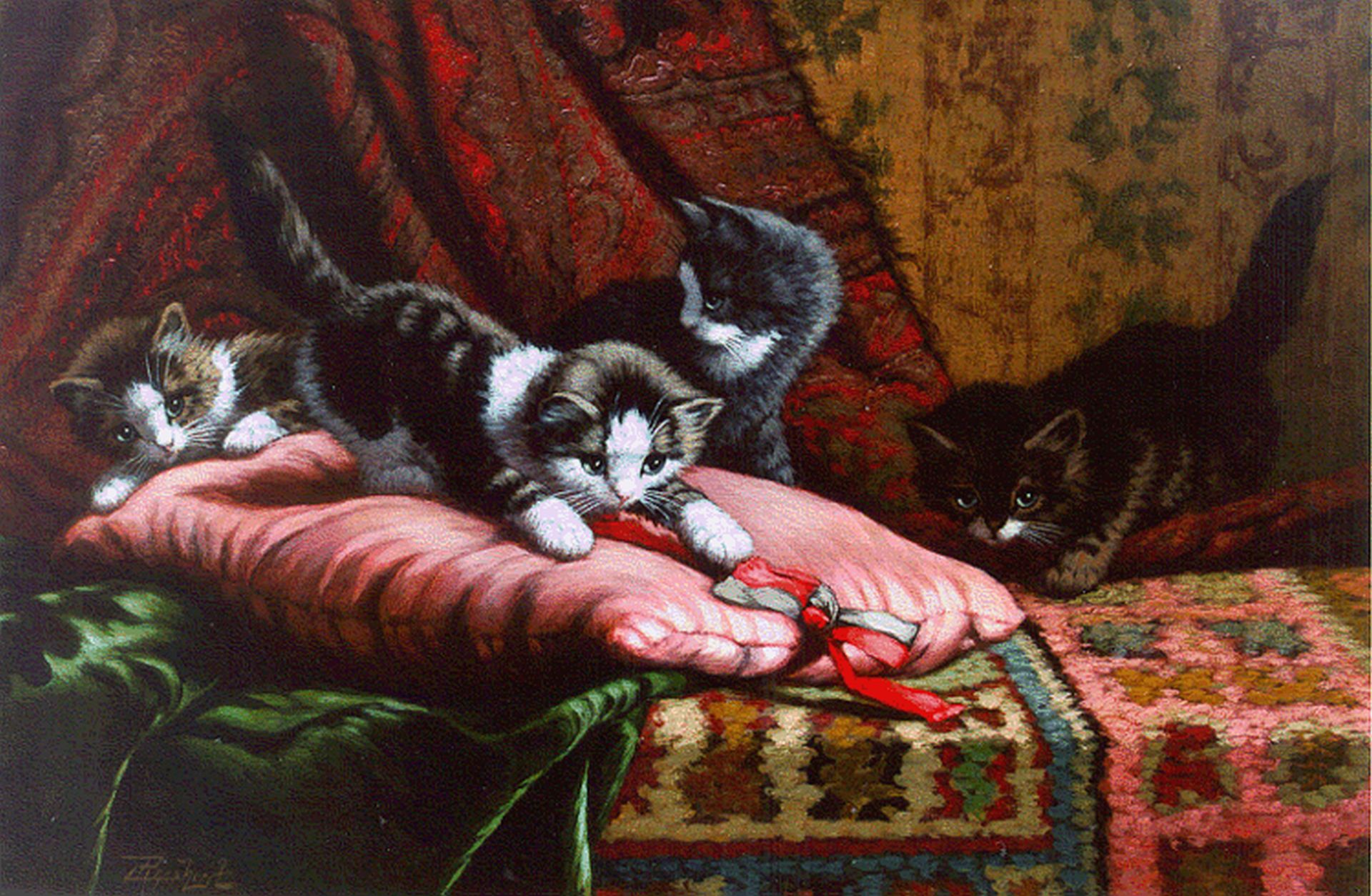 Cornelis Raaphorst kunstwerk • schilderij • voorheen te koop Vier spelende poesjes