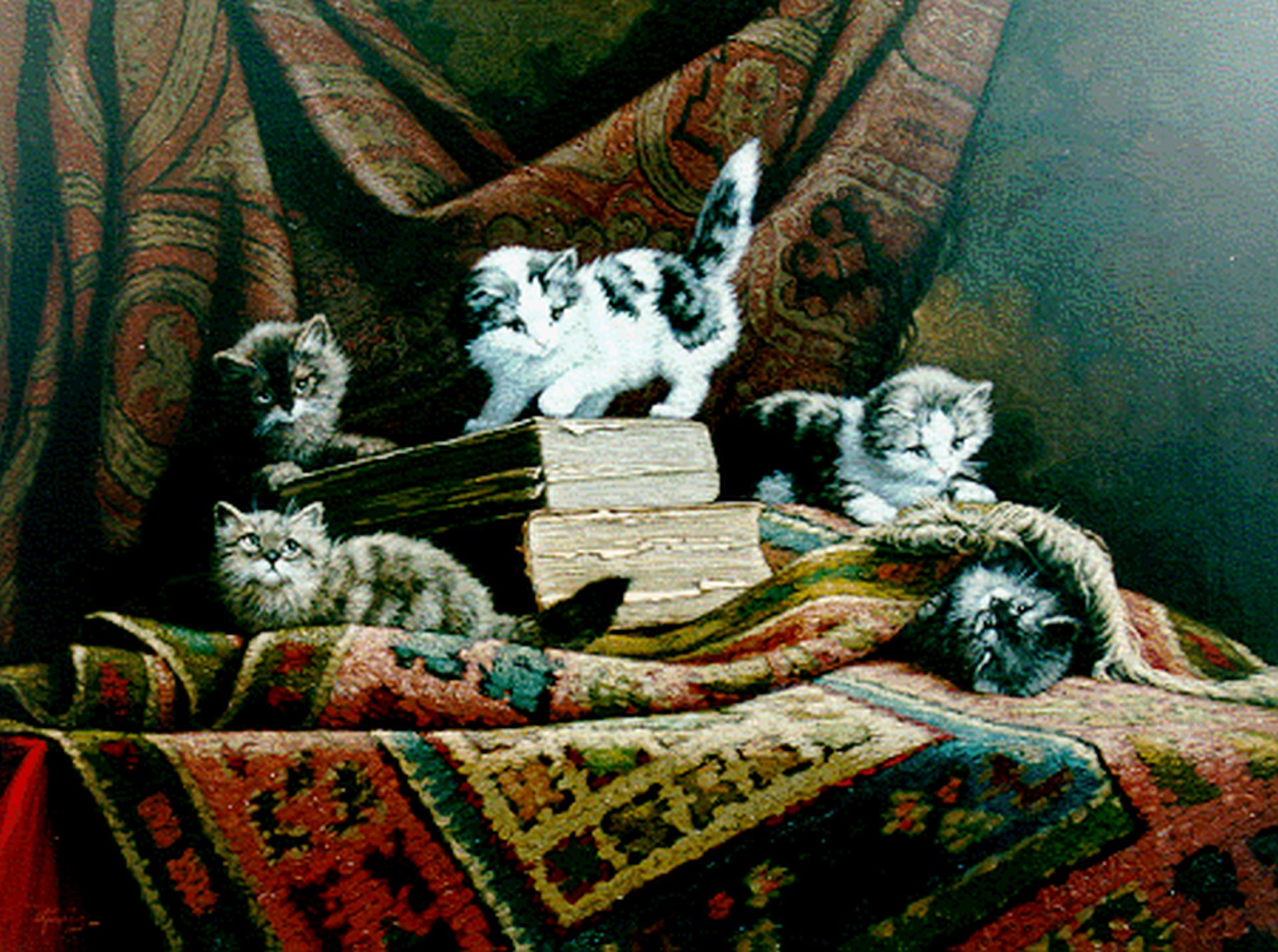 Cornelis Raaphorst kunstwerk • schilderij • voorheen te koop Vijf jonge katjes