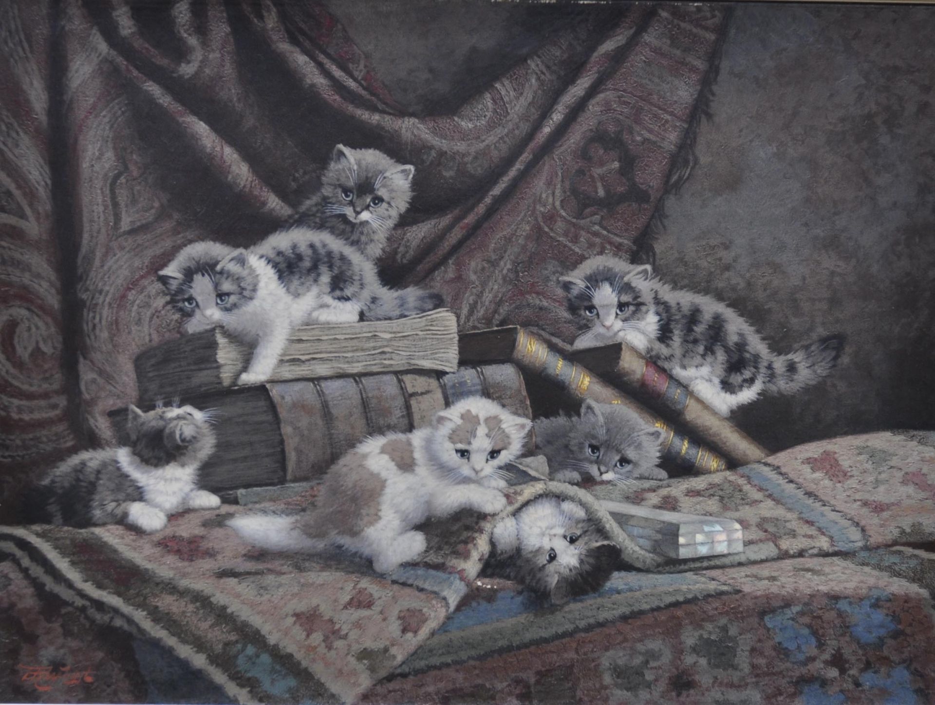 Cornelis Raaphorst kunstwerk • schilderij • voorheen te koop Zes spelende poesjes