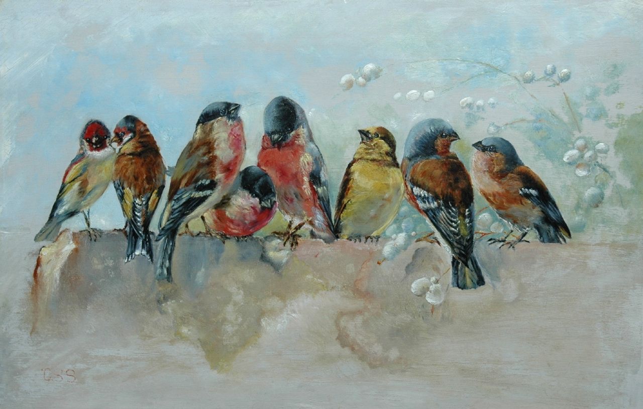 Cornelis Samuel Stortenbeker kunstwerk • schilderij • voorheen te koop Siervogels op een muurtje