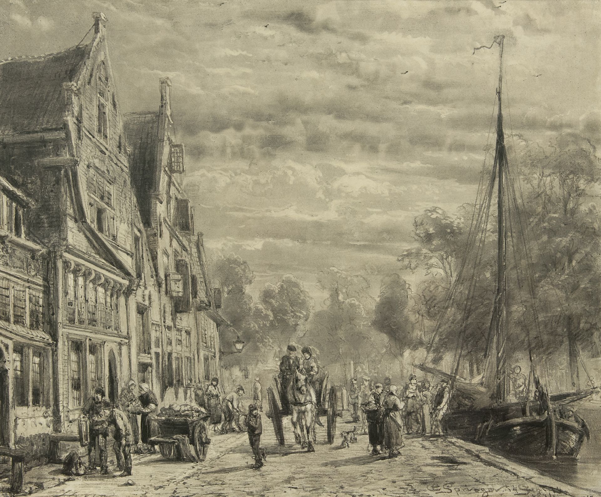 Cornelis Springer kunstwerk • aquarel • tekening • voorheen te koop De Biersluis te Hoorn