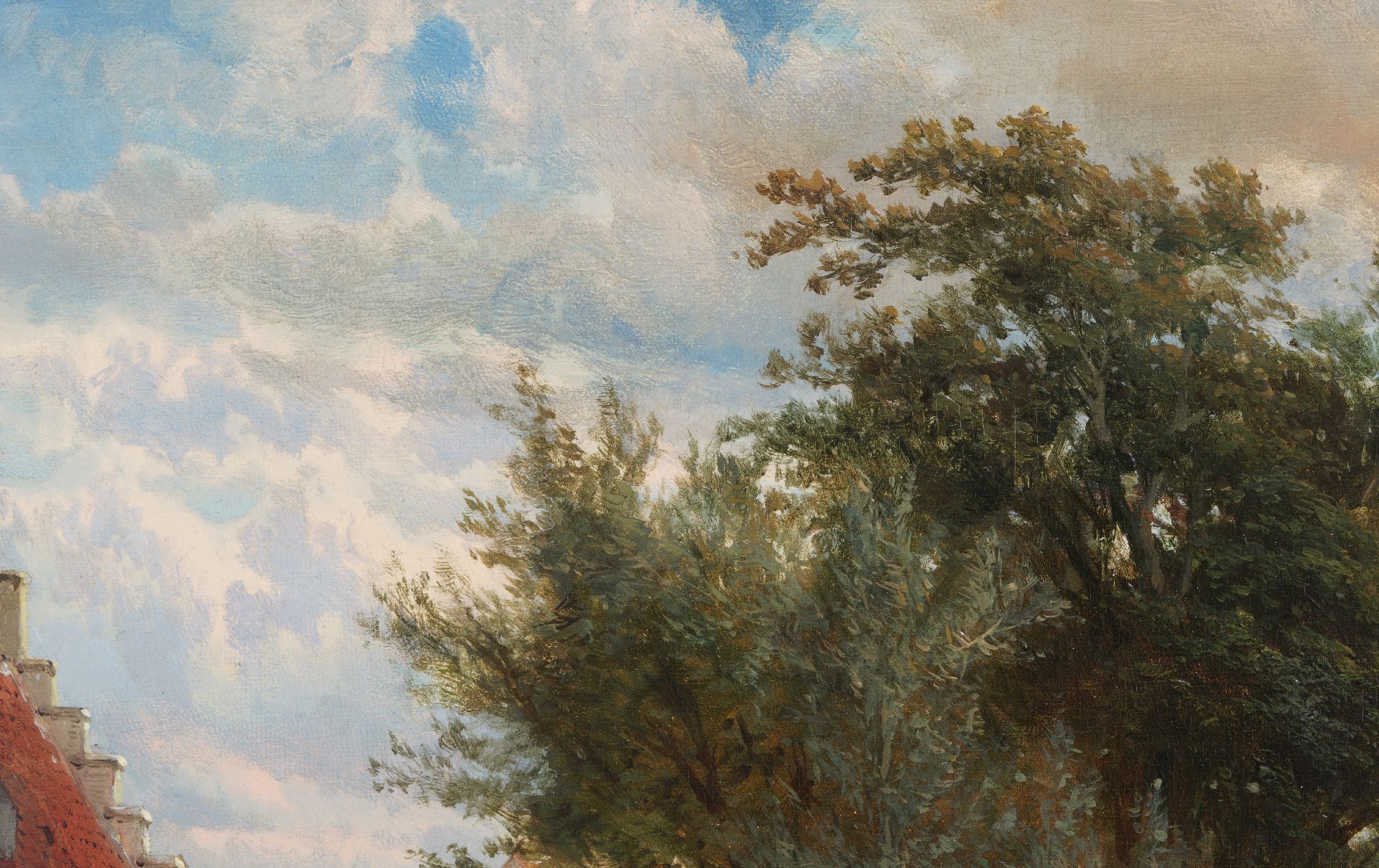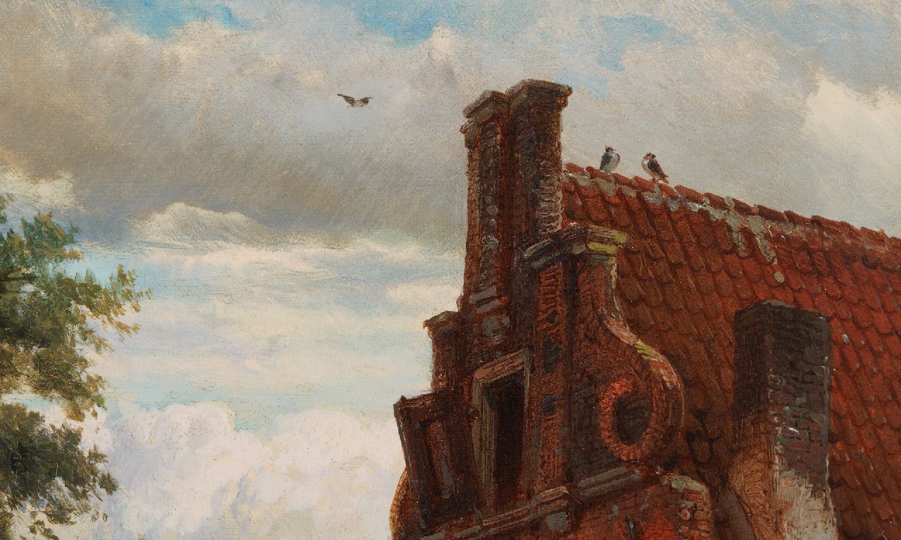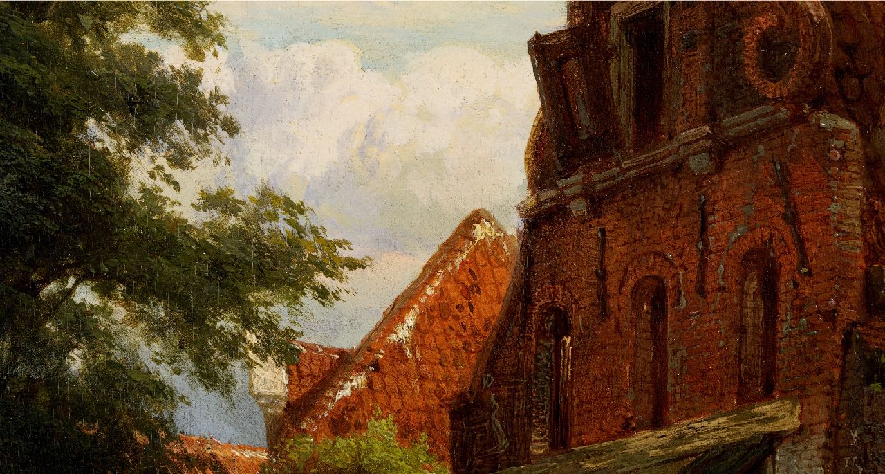 Cornelis Springer schilderde vooral stads- en dorpsgezichten waarin gevels en levendige stoffage baden in een warm zonlicht. Samen met Barend Cornelis Koekkoek en Andreas Schelfhout behoort hij tot de belangrijkste schilders van de Hollandse romantiek. In zijn schilderijen is vaak een prominente plaats toebedeeld aan gebouwen uit de 17e en 18e eeuw. Soms is dit een fantasie-architectuur, maar in de meeste gevallen waren dit bestaande gebouwen waarvan men rond 1850 de schoonheid 'herontdekte'. Springer maakte van deze gebouwen meestal eerst een uitvoerige schets, die hij dan later tot schilderij uitwerkte.
