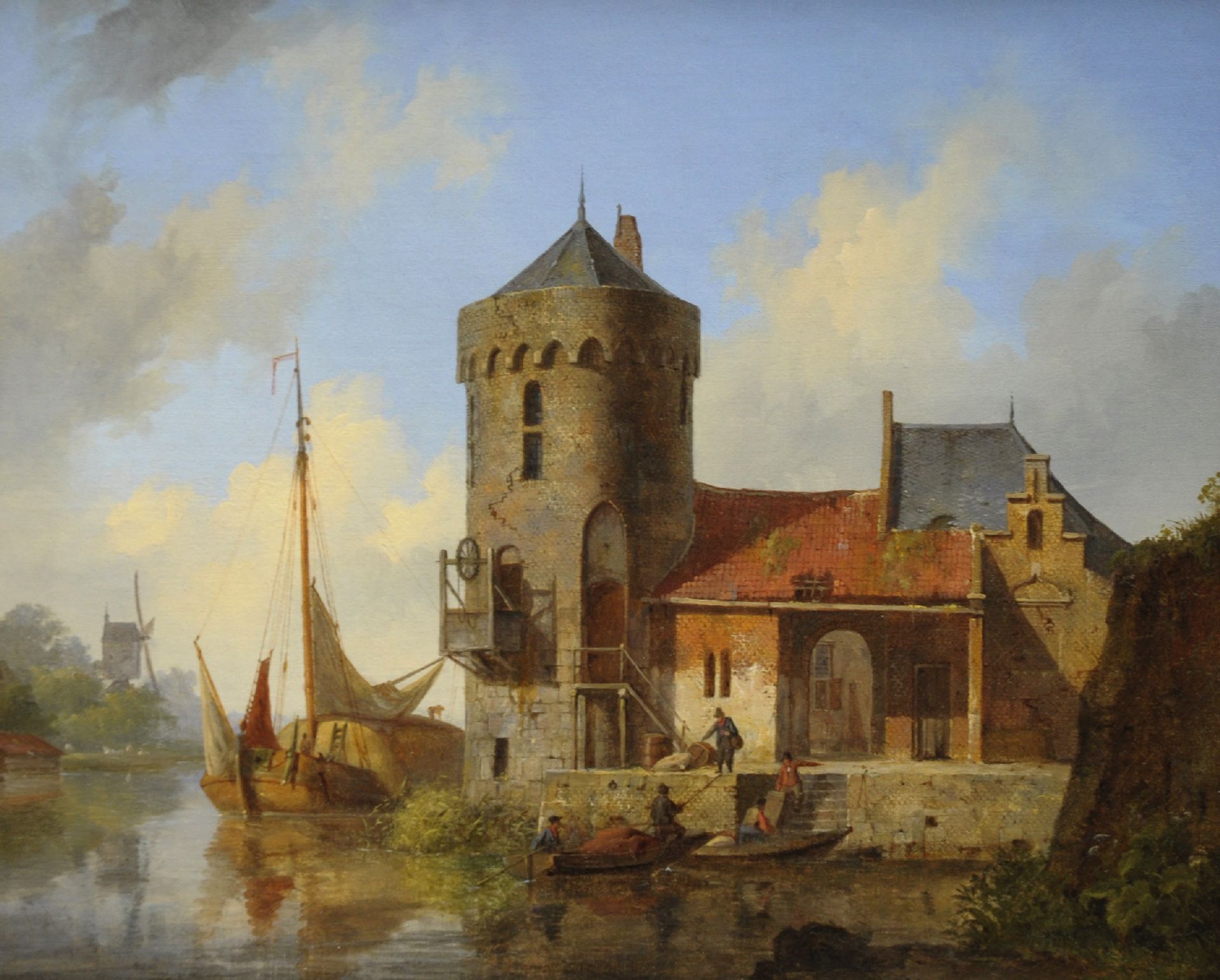 Cornelis Springer kunstwerk • schilderij • voorheen te koop Afgemeerde hooischuit aan de stadsrand