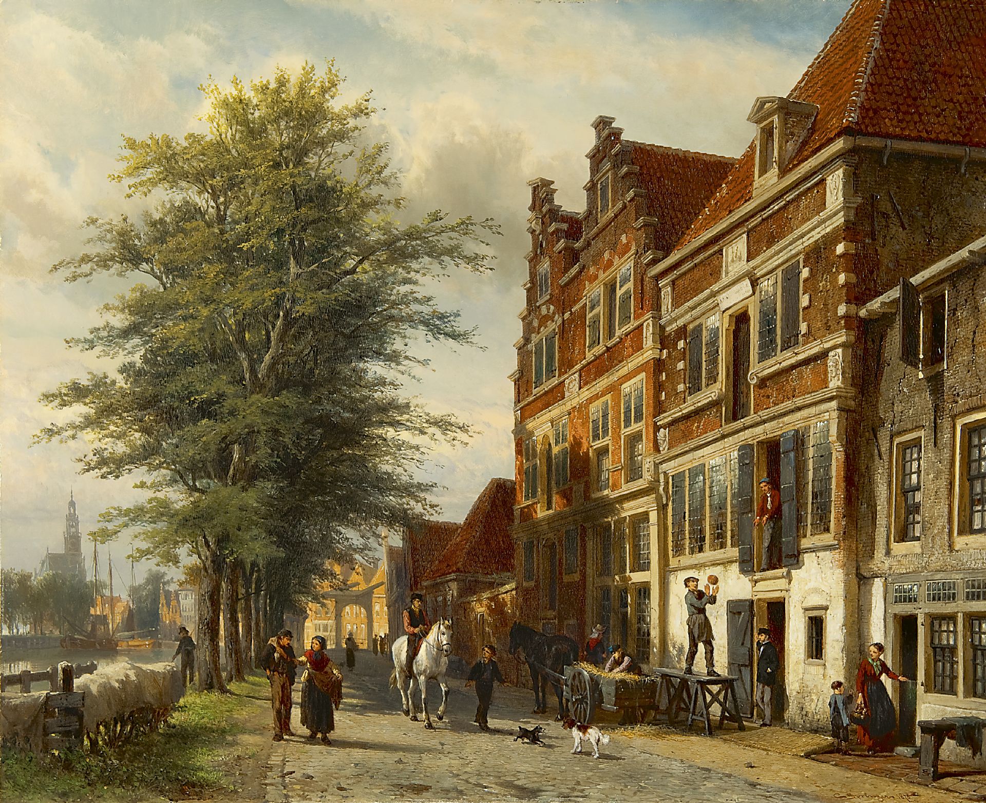 Cornelis Springer kunstwerk • schilderij • voorheen te koop De Doelenkade te Hoorn, bij zomer