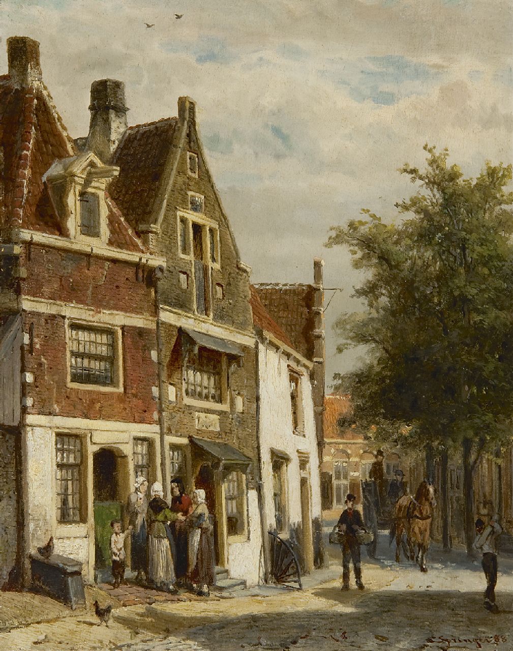 Cornelis Springer kunstwerk • schilderij • voorheen te koop De Leliestraat in Hoorn