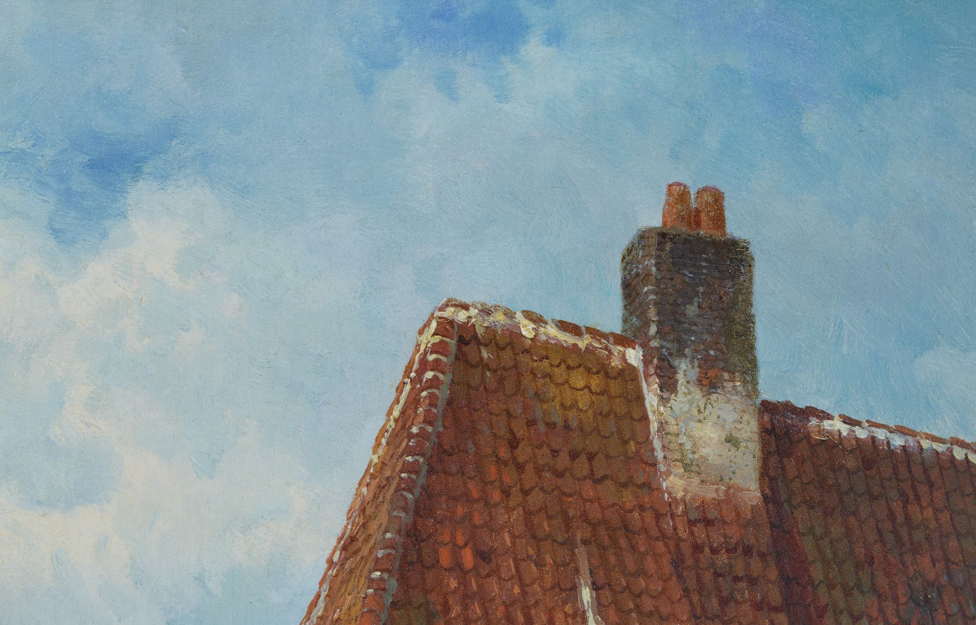 Met verso verzegelde authenticiteitsverklaring van de schilder op etiket: 'De ondergeteekende verklaart dat het schilderij voorstellende Gezicht te Weesp Prov. N. Holland door hem is vervaardigd, C. Springer, Amsterdam 30 Dec 77'