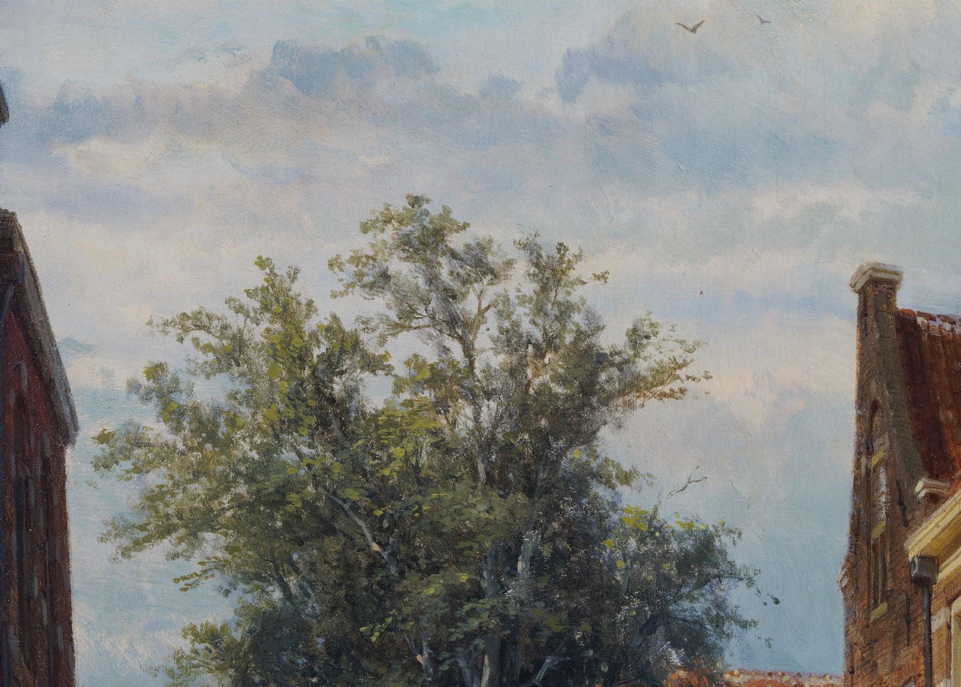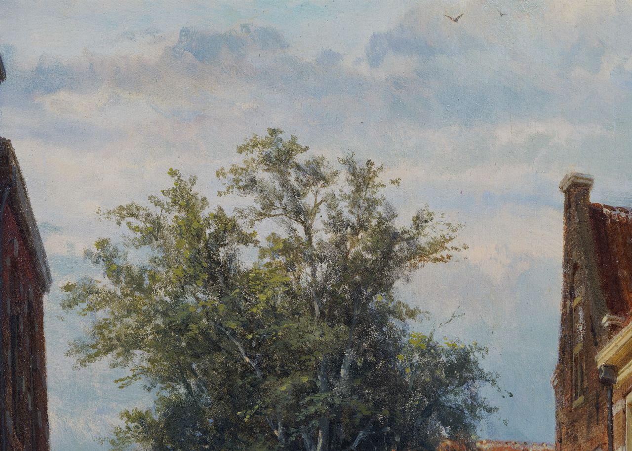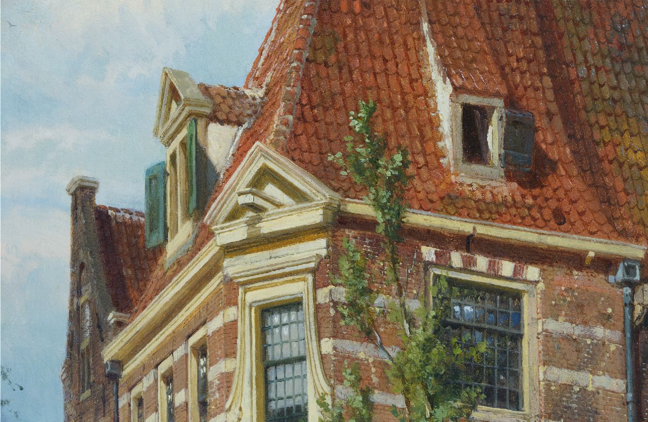 Cornelis Springer schilderde vooral stads- en dorpsgezichten waarin gevels en levendige stoffage baden in een warm zonlicht. Samen met Barend Cornelis Koekkoek en Andreas Schelfhout behoort hij tot de belangrijkste schilders van de Hollandse romantiek. In zijn schilderijen is vaak een prominente plaats toebedeeld aan gebouwen uit de 17e en 18e eeuw. Soms is dit een fantasie-architectuur, maar in de meeste gevallen waren dit bestaande gebouwen waarvan men rond 1850 de schoonheid 'herontdekte'. Springer maakte van deze gebouwen meestal eerst een uitvoerige schets, die hij dan later tot schilderij uitwerkte.