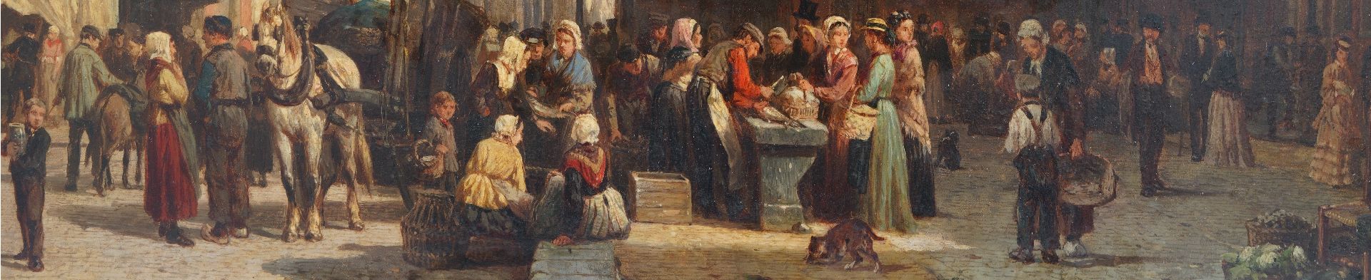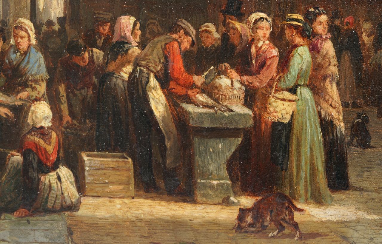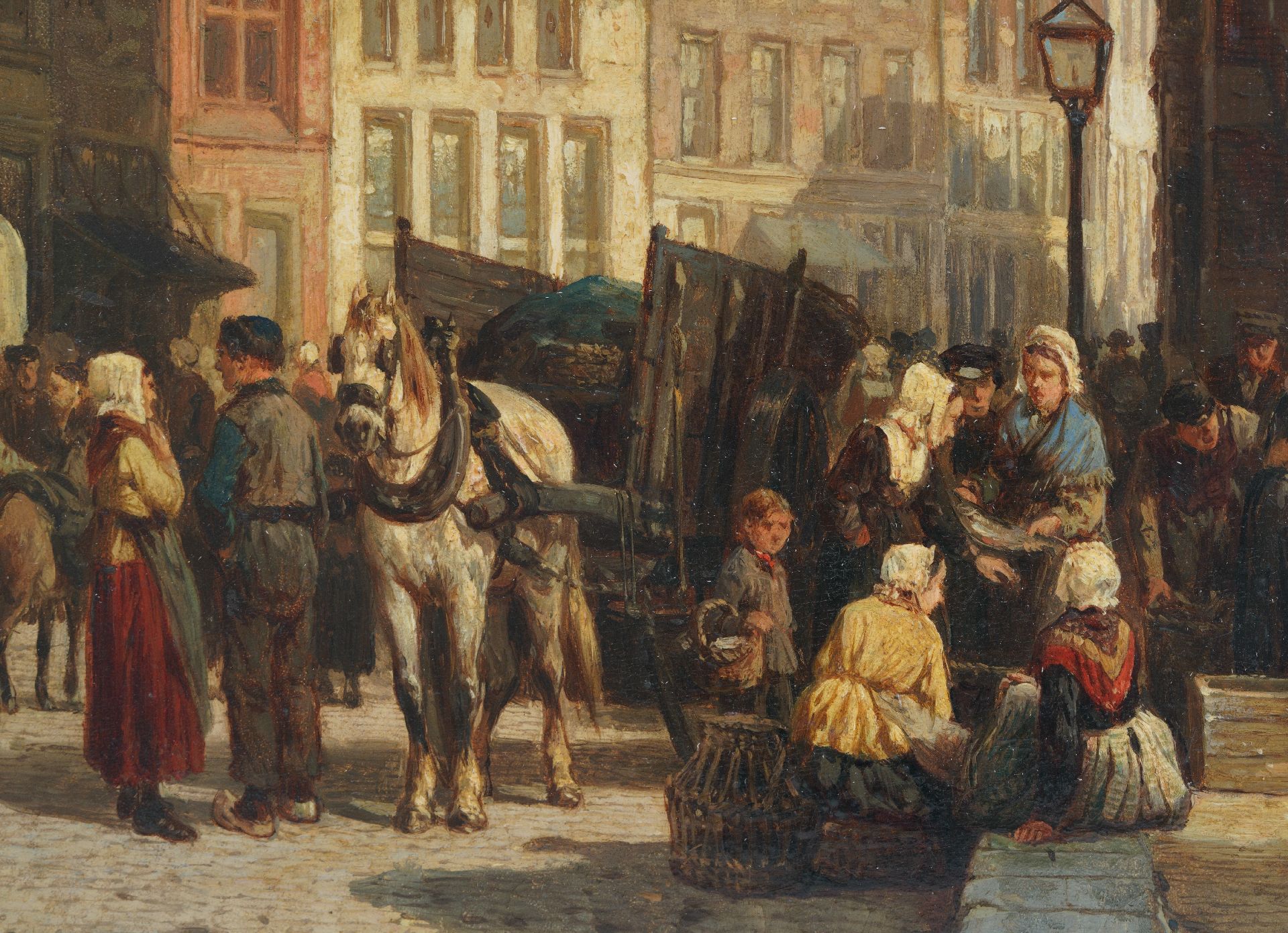 Cornelis Springer kunstwerk • schilderij • te koop Drukbevolkte markt voor de Wijnhuistoren in Zutphen