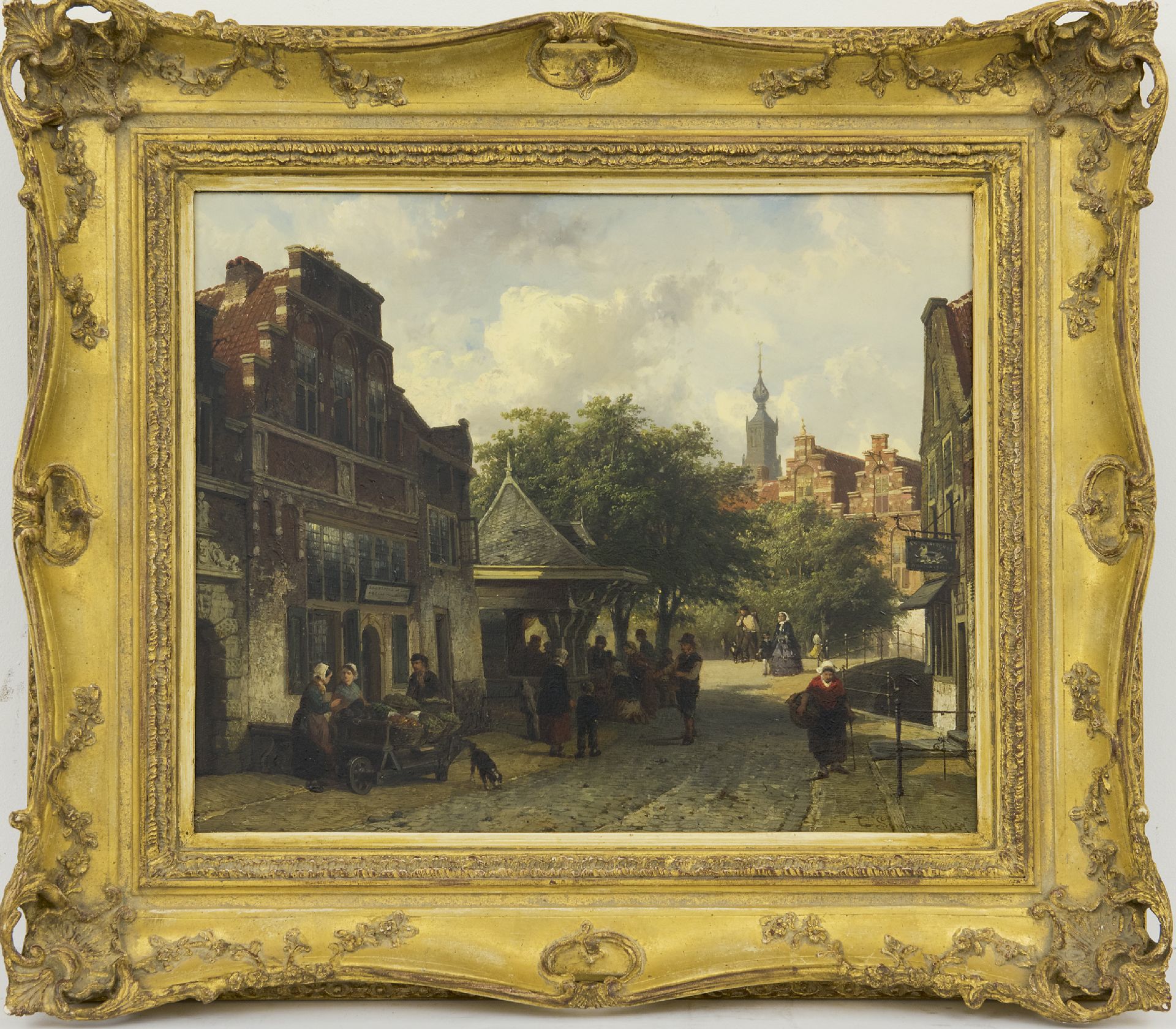 Cornelis Springer schilderde vooral stads- en dorpsgezichten waarin gevels en levendige stoffage baden in een warm zonlicht. Samen met Barend Cornelis Koekkoek en Andreas Schelfhout behoort hij tot de belangrijkste schilders van de Hollandse romantiek. In zijn schilderijen is vaak een prominente plaats toebedeeld aan gebouwen uit de 17e en 18e eeuw. Soms is dit een fantasie-architectuur, maar in de meeste gevallen waren dit bestaande gebouwen waarvan men rond 1850 de schoonheid 'herontdekte'. Springer maakte van deze gebouwen meestal eerst een uitvoerige schets, die hij dan later tot schilderij uitwerkte.