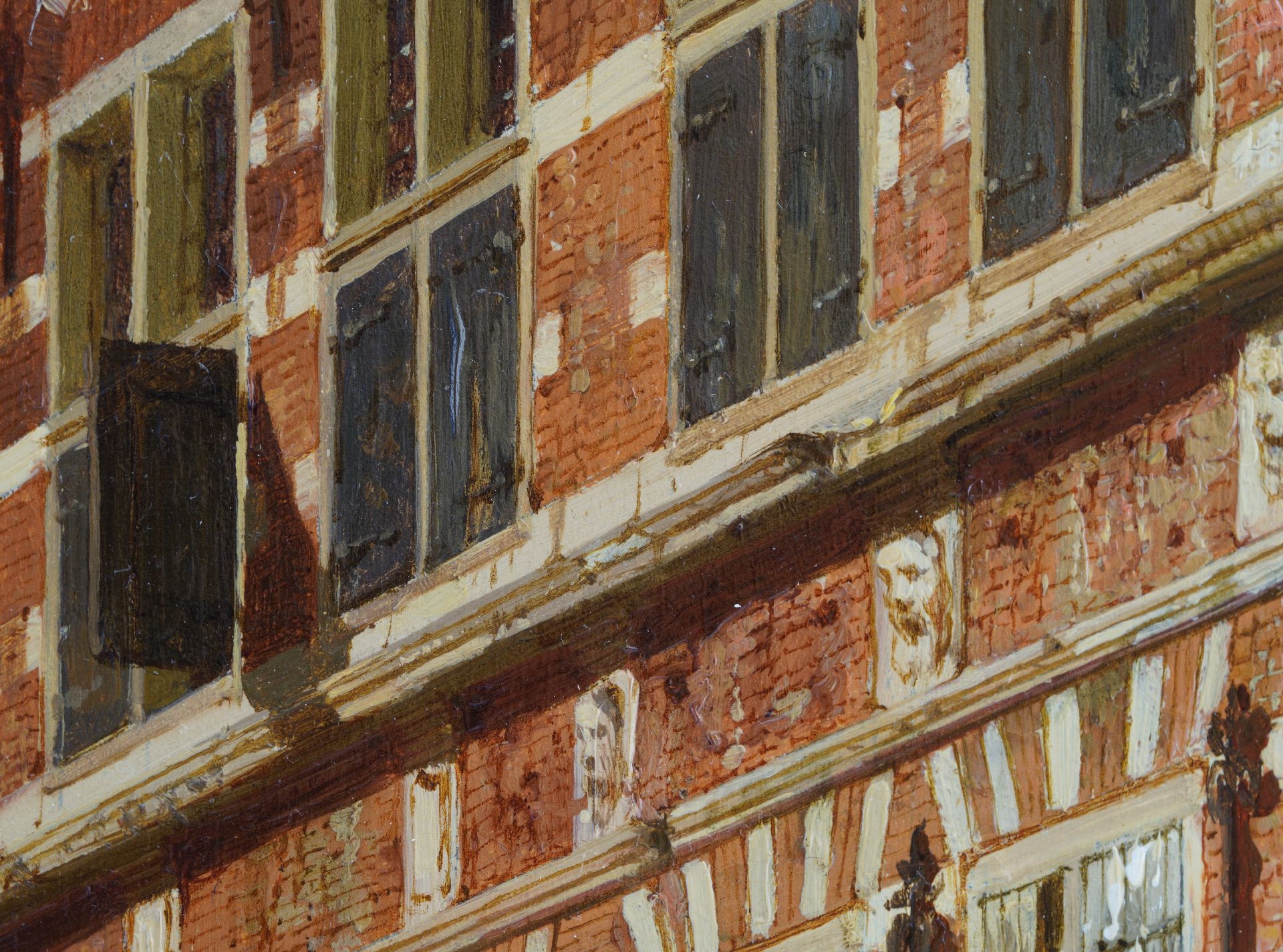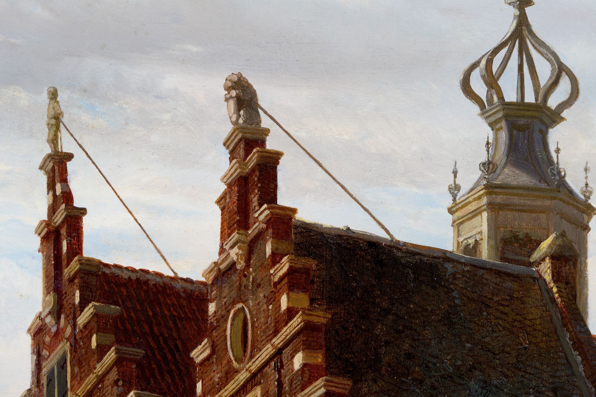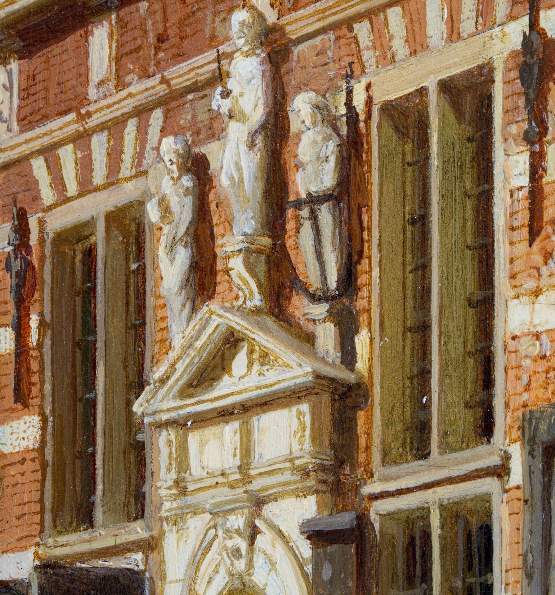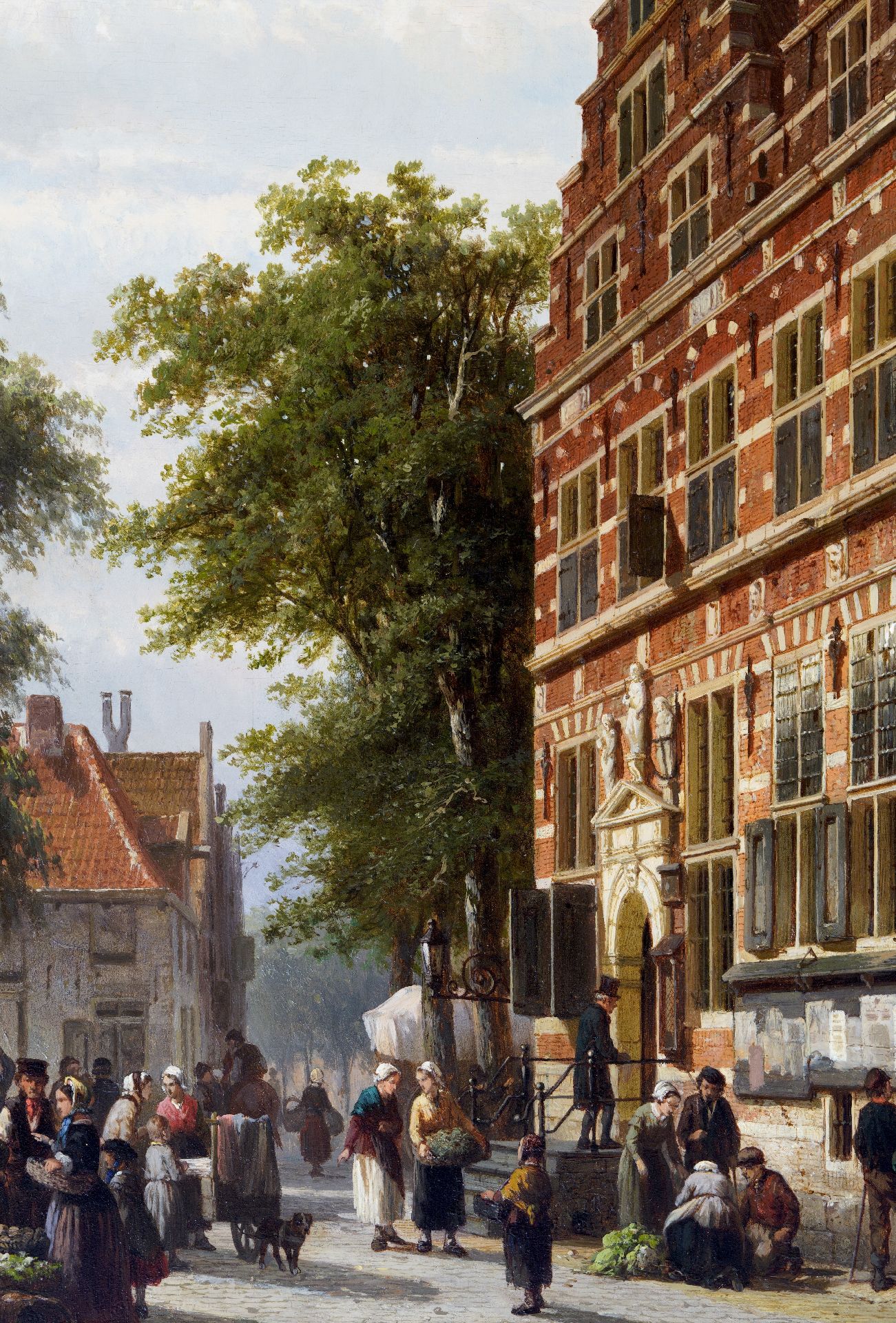 Met verso authenticiteitsverklaring van de schilder op verzegeld etiket: 'Le Soussigné declare par ici que ce tableau, representant Rue de l’Hotel de Ville de Naarden prov. d’Hollande septentrionale Pays Bas, est peint par lui, Amsterdam 1863, C. Springer’’