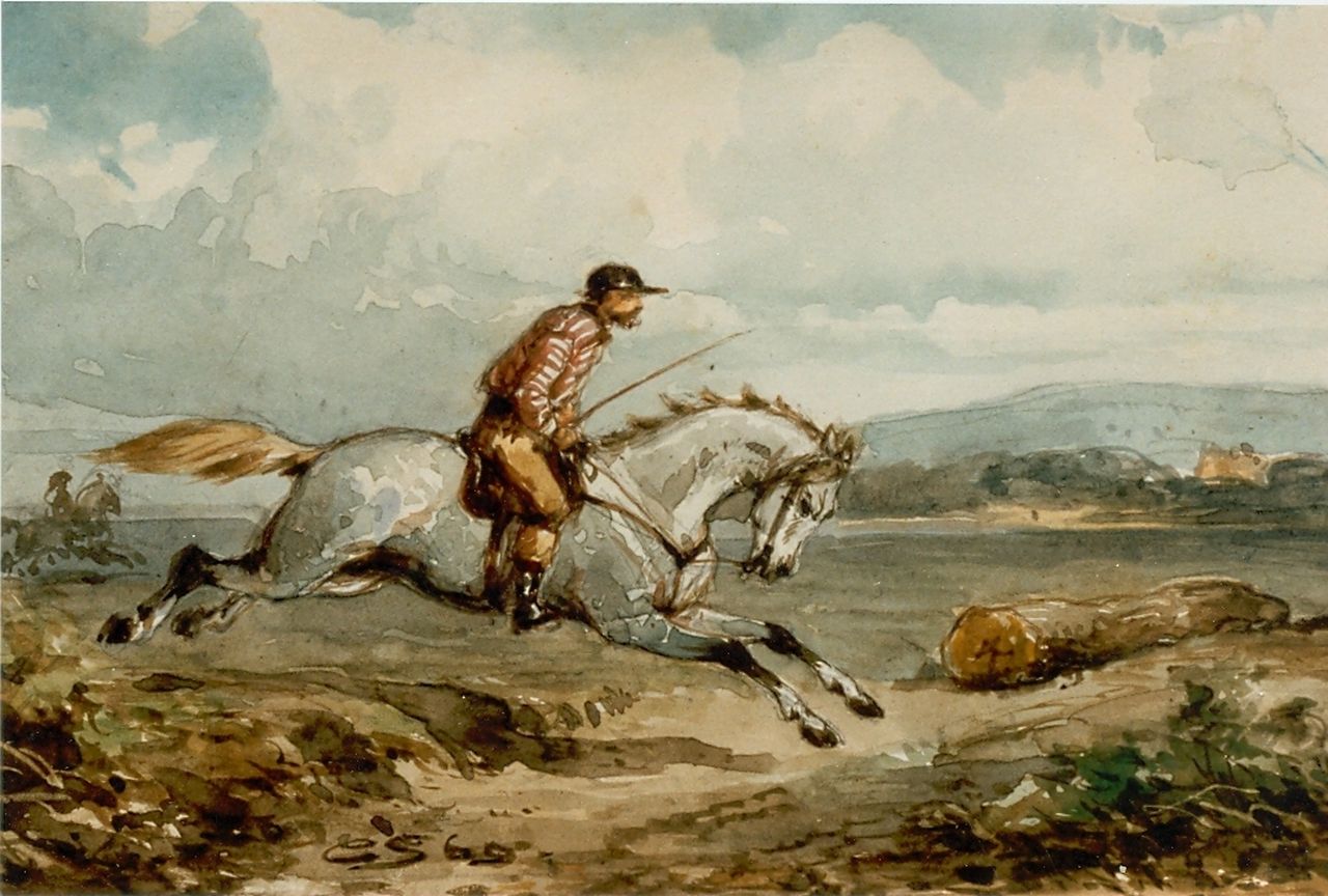 Cornelis Springer kunstwerk • aquarel • tekening • voorheen te koop Ruiter te paard