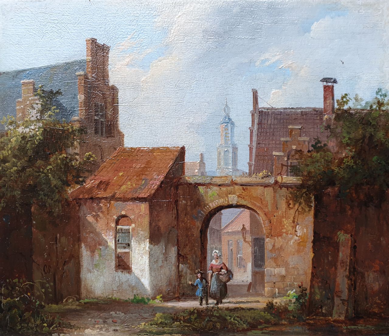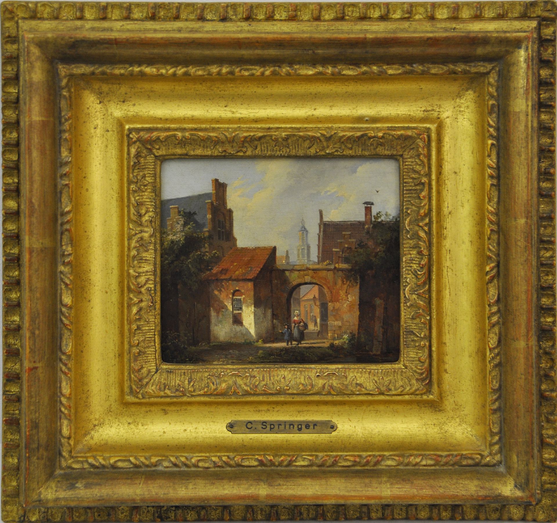Cornelis Springer kunstwerk • schilderij • voorheen te koop Zonnig stadgezicht met poortje