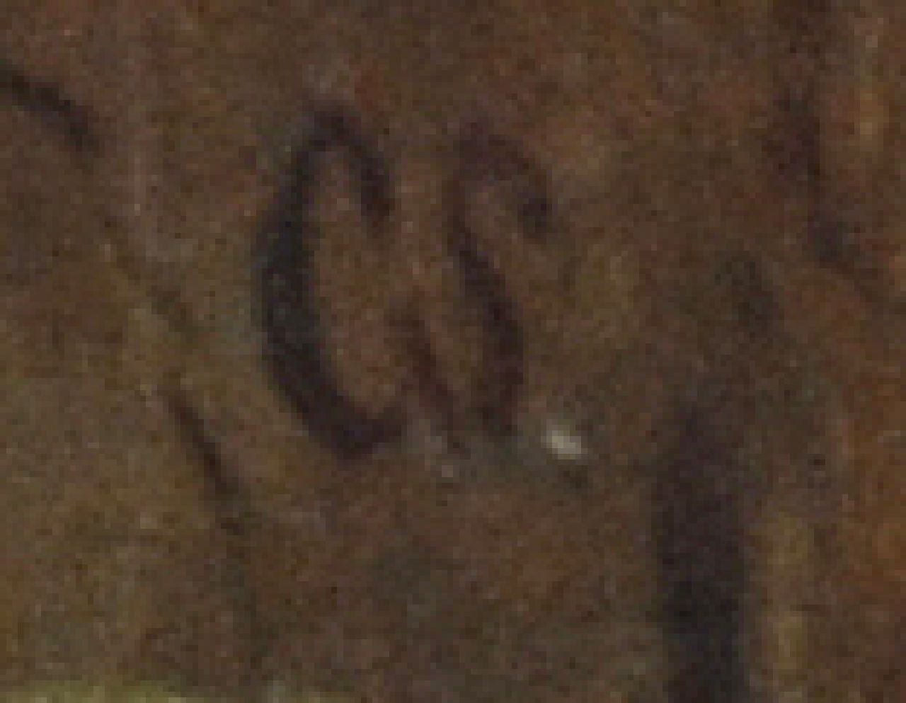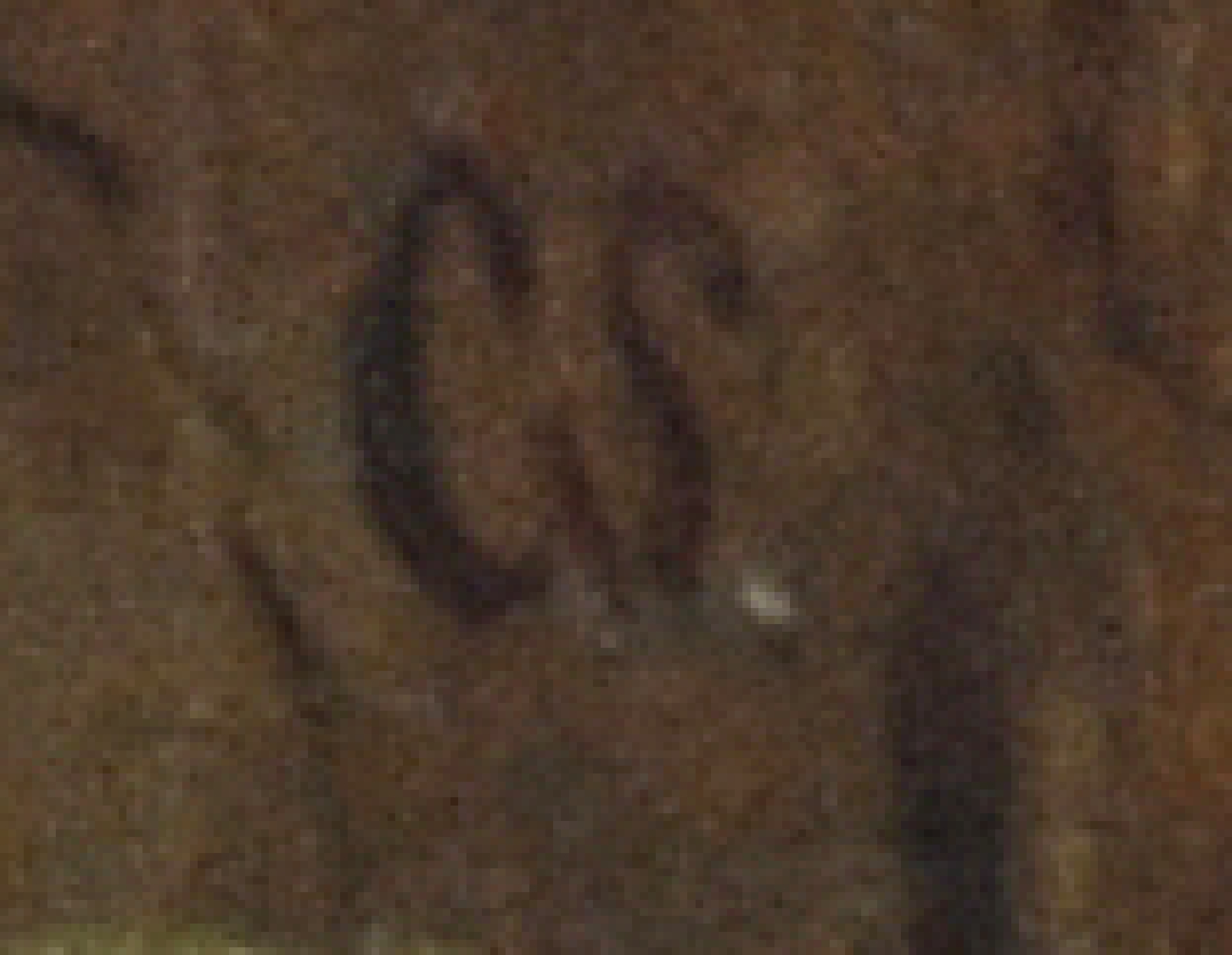 olieverf op paneel 13,7 x 16,1 cm, gesigneerd linksonder met monogram en verso op etiket voluit en te dateren ca. 1838-1840