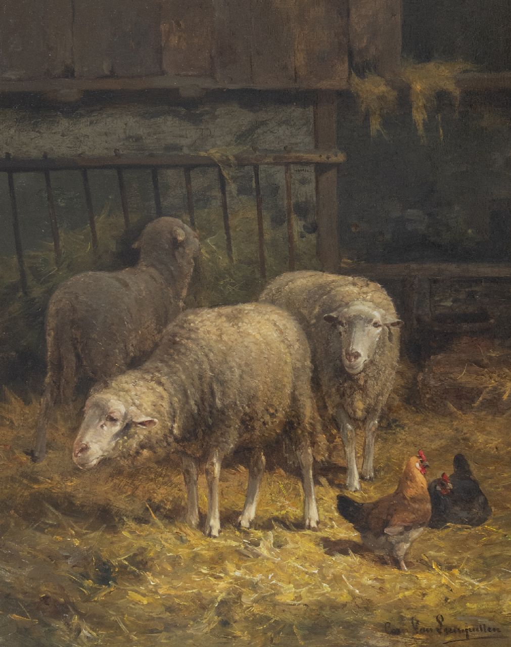 Cornelis van Leemputten kunstwerk • schilderij • voorheen te koop Schapen in de stal