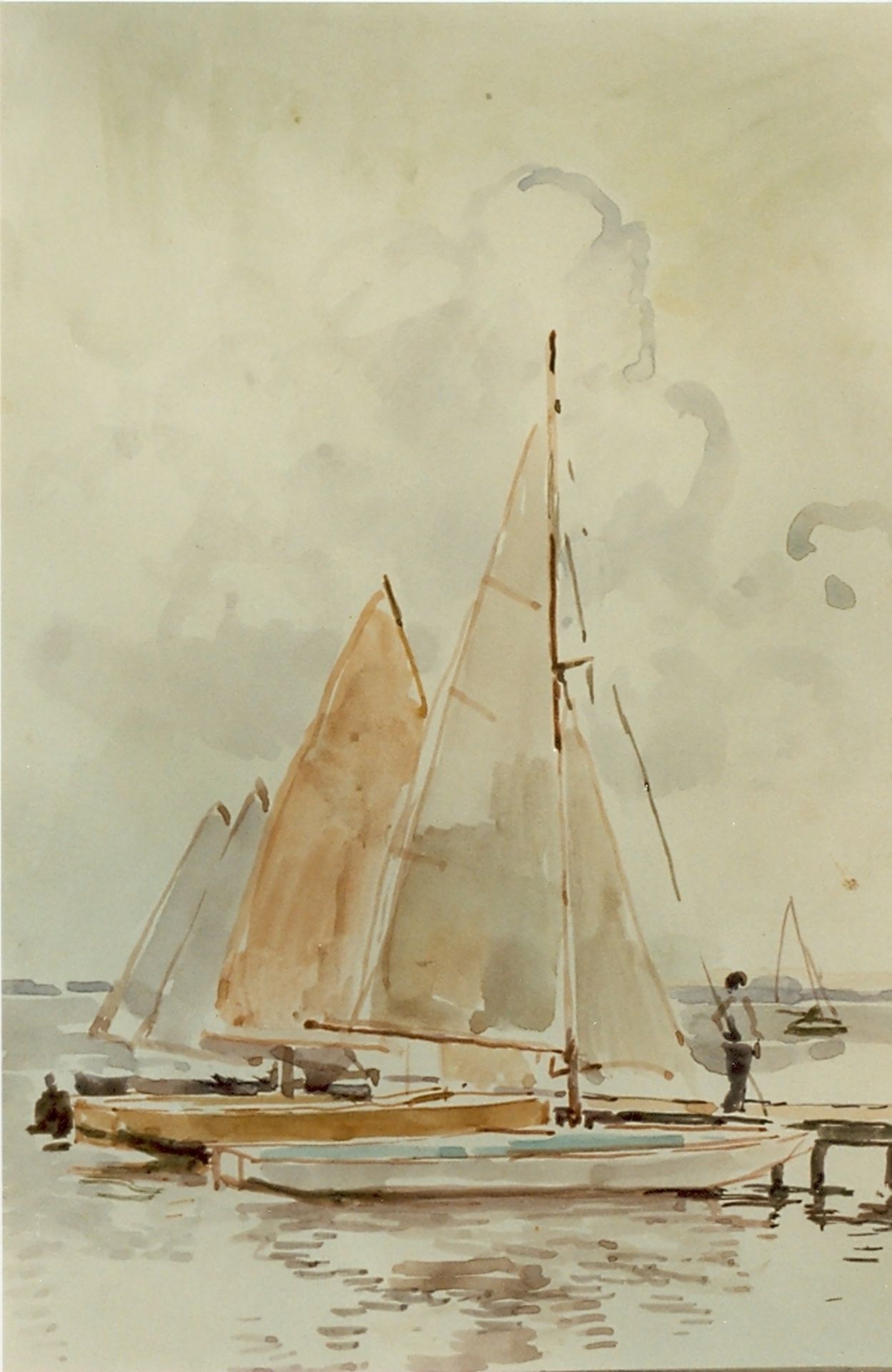 Cornelis Vreedenburgh kunstwerk • aquarel • tekening • voorheen te koop Afgemeerde zeilboten