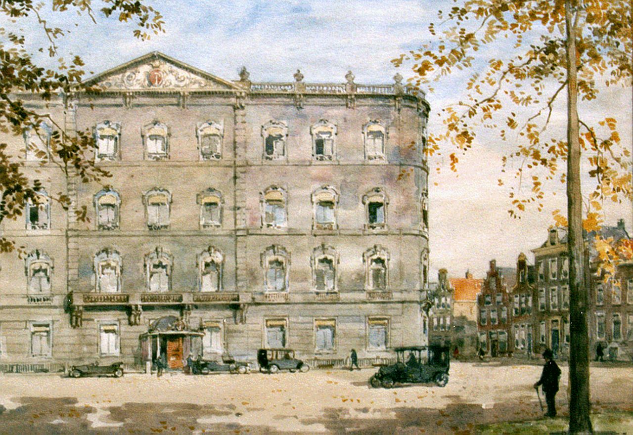 Cornelis Vreedenburgh kunstwerk • aquarel • tekening • voorheen te koop Auto's voor hotel Des Indes te Den Haag