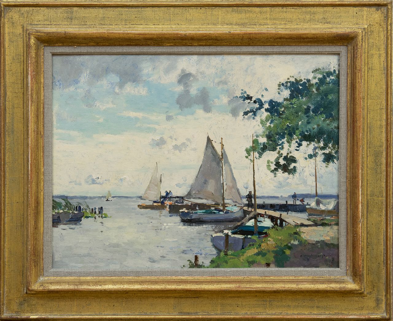 Cornelis Vreedenburgh kunstwerk • schilderij • te koop Aanlegsteiger met zeilboten aan de Loosdrechtse Plassen