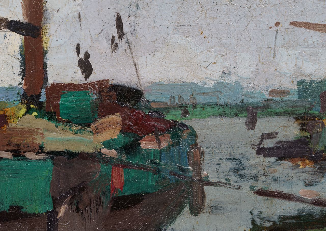 Cornelis Vreedenburgh kunstwerk • schilderij • te koop Afgemeerde turfschepen