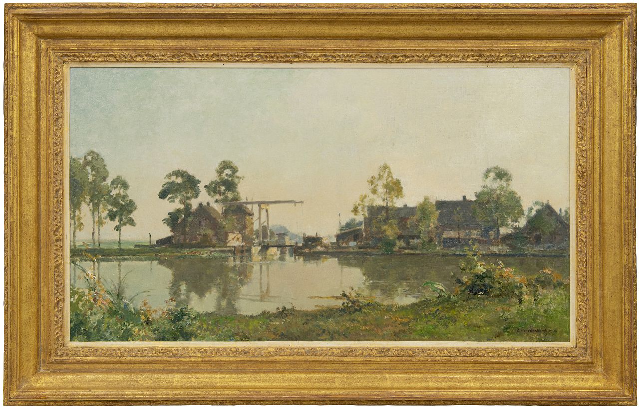 Cornelis Vreedenburgh kunstwerk • schilderij • voorheen te koop Boerderij aan een kanaal met ophaalbrug