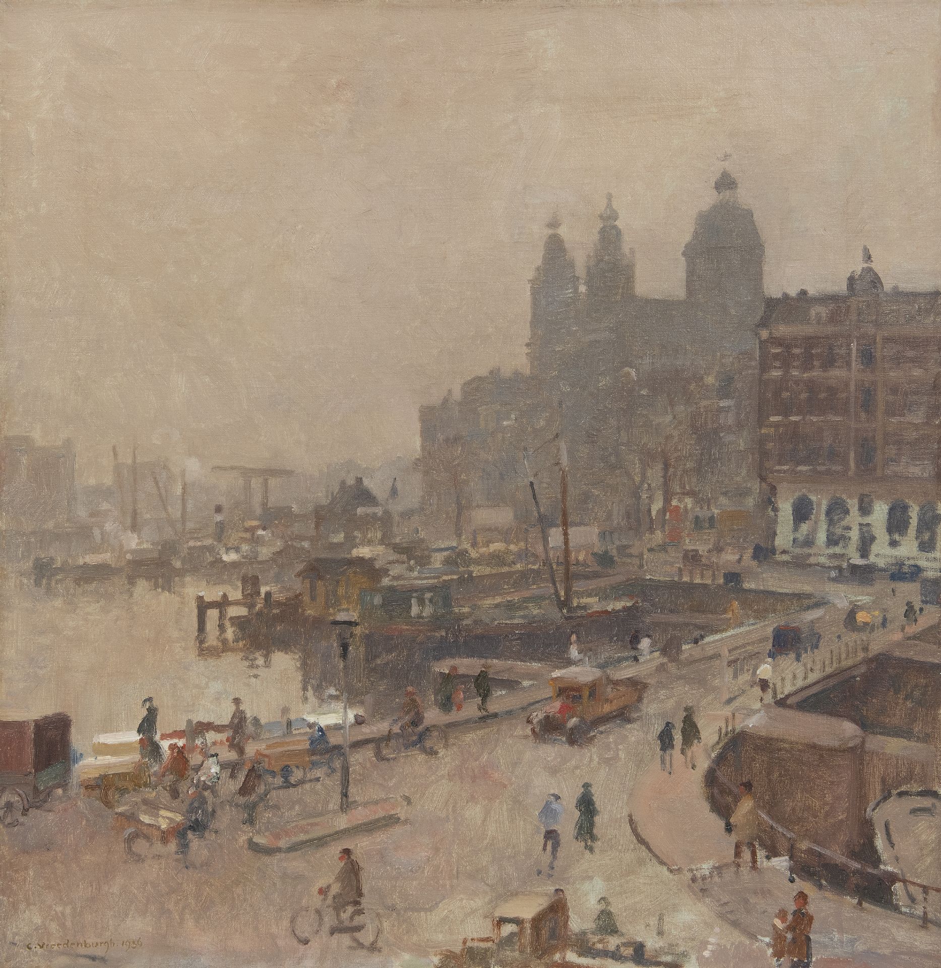 Cornelis Vreedenburgh was grotendeels autodidact. Aanvankelijk werkte hij als huisschilder en tekende en schilderde hij in zijn vrije tijd, totdat hij zich in 1904 door een koninklijke subsidie helemaal aan de schilderkunst kon wijden. Waardevol waren voor hem de adviezen van de impressionist W.B. Tholen, die hem vaak op zijn boot meenam op de Kagerplassen en de Loosdrechtse plassen. De weide- en watertaferelen die Vreedenburgh schilderde waren direct zeer geliefd door hun sterke kleuren en de treffende manier waarop hij het licht en de atmosfeer van het landschap weergaf. In 1917 vestigde de schilder zich in Laren. Vanaf die tijd ontstonden ook veel Amsterdamse stadsgezichten.