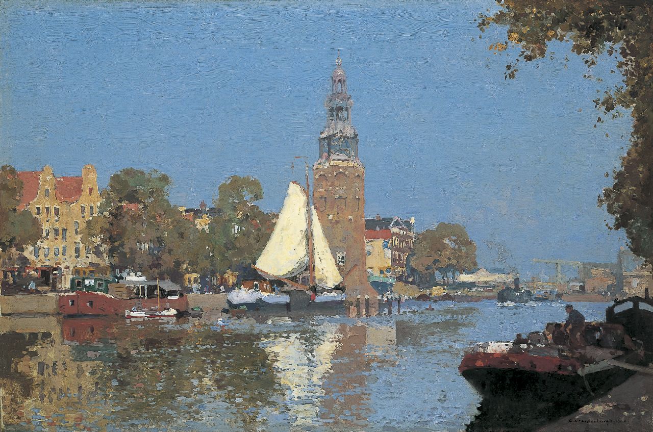 Cornelis Vreedenburgh kunstwerk • schilderij • voorheen te koop Gezicht op de Oude Schans met de Montelbaanstoren, Amsterdam