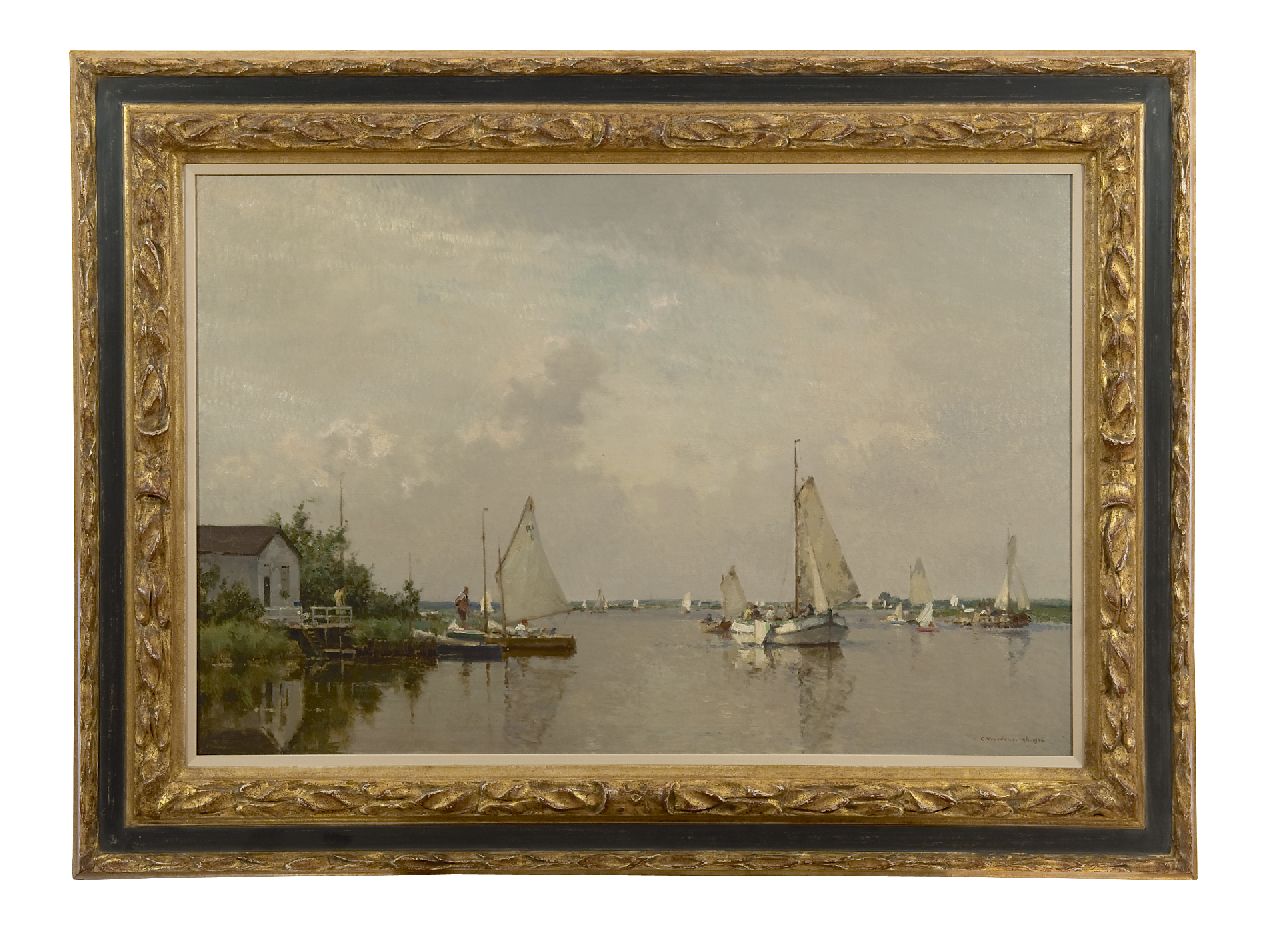 Cornelis Vreedenburgh kunstwerk • schilderij • voorheen te koop Gezicht op een plas met lemsteraak en andere zeilboten