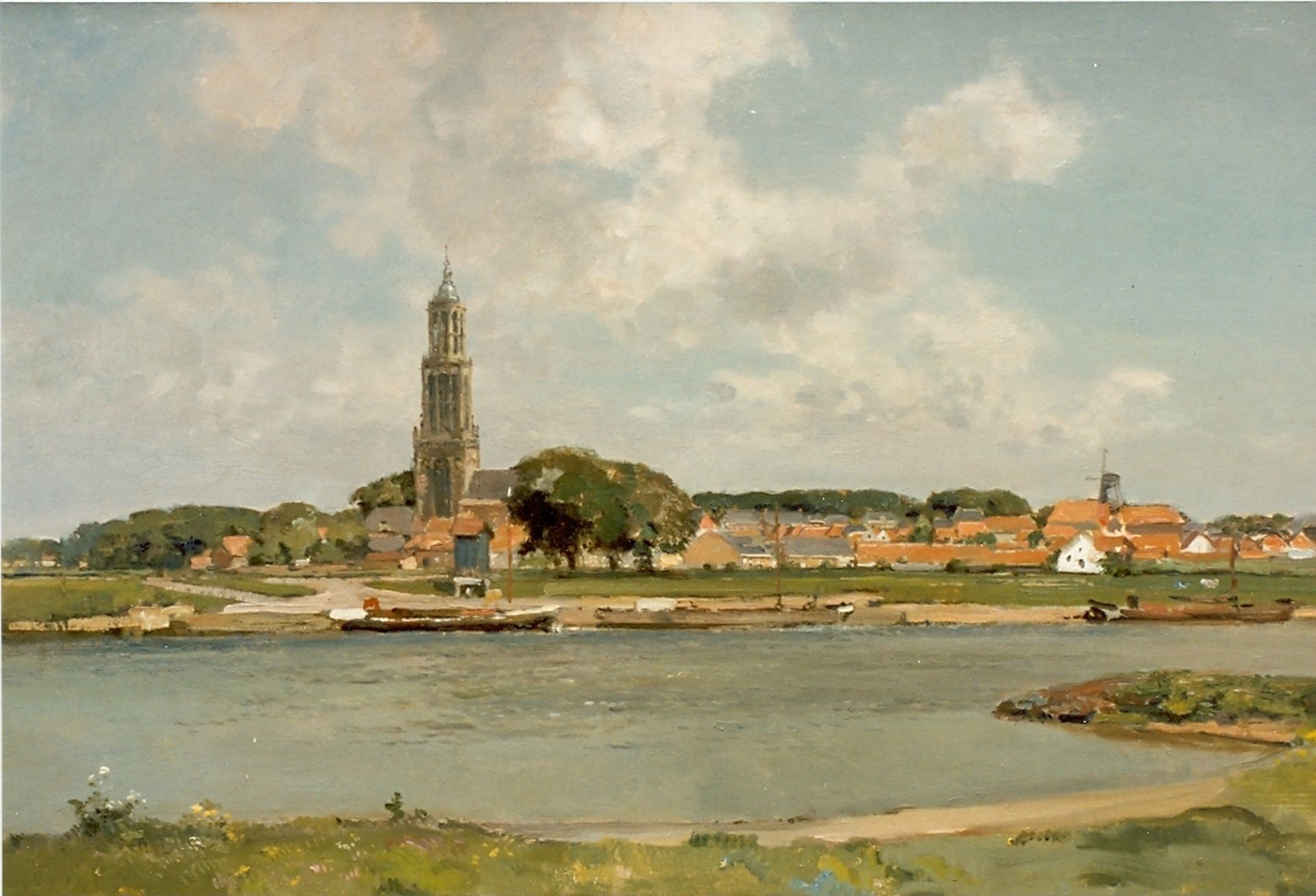 Cornelis Vreedenburgh kunstwerk • schilderij • voorheen te koop Gezicht op Rhenen
