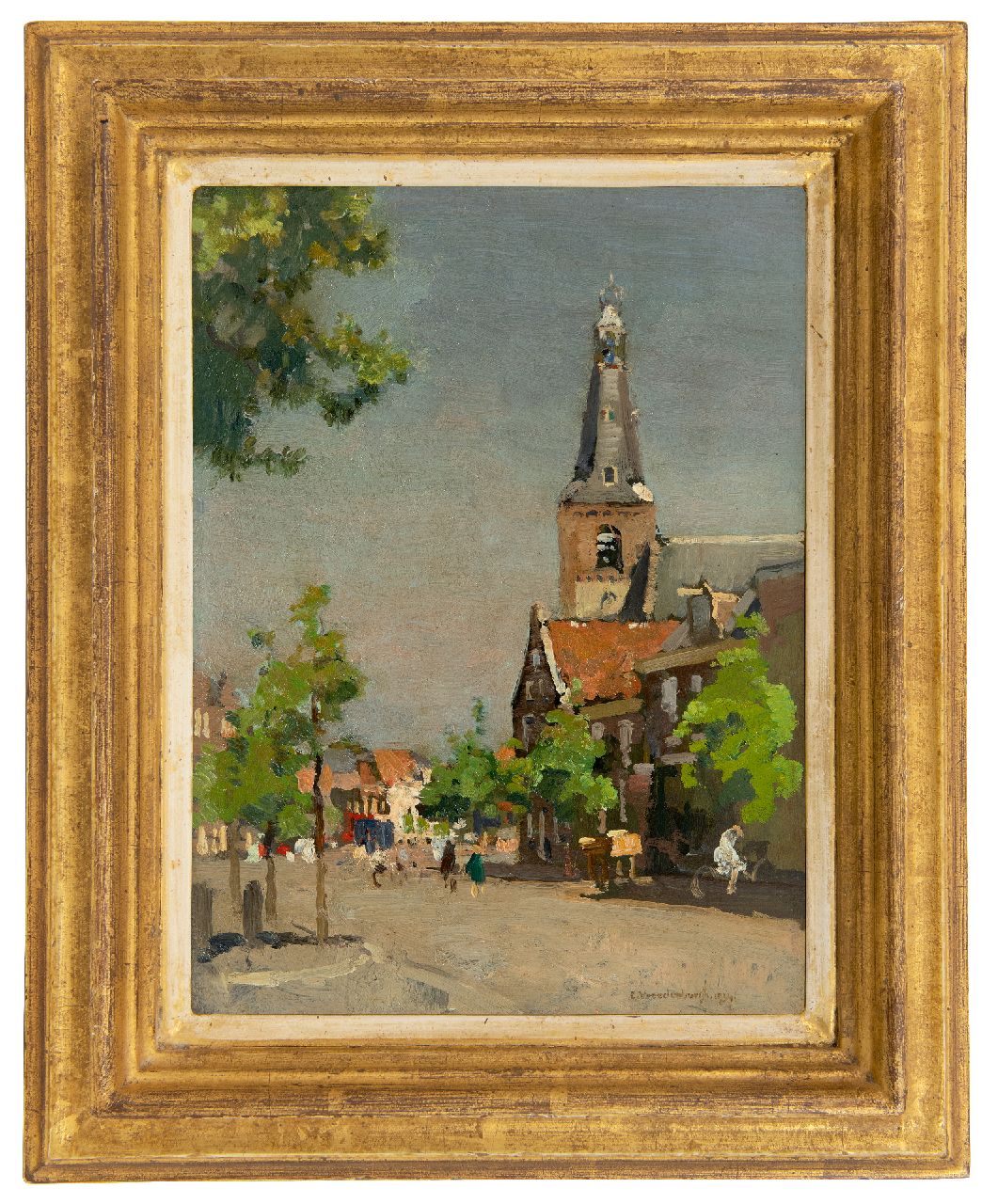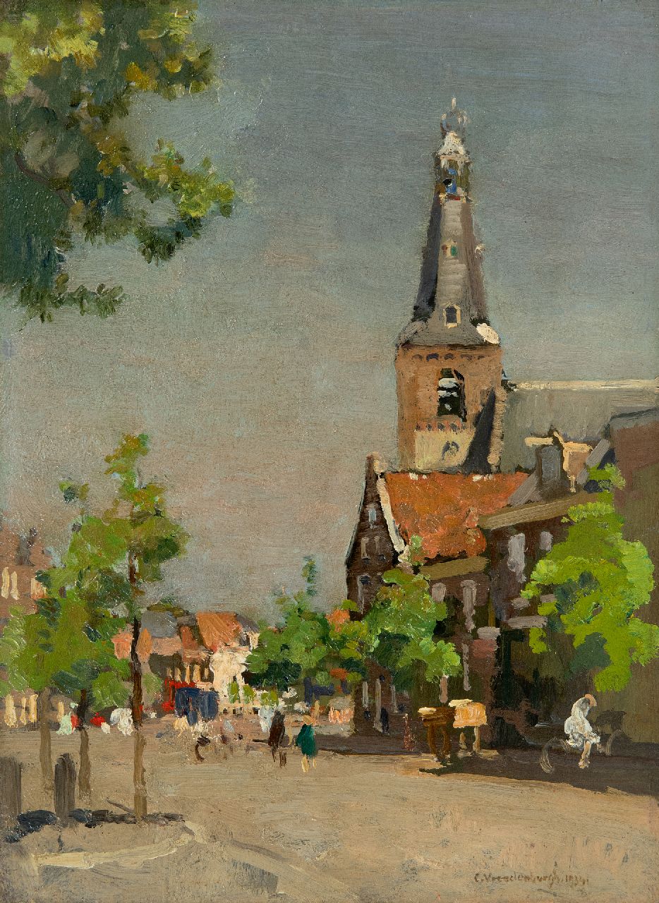 Cornelis Vreedenburgh kunstwerk • schilderij • voorheen te koop Gezicht op Weesp met de toren van de Laurenskerk